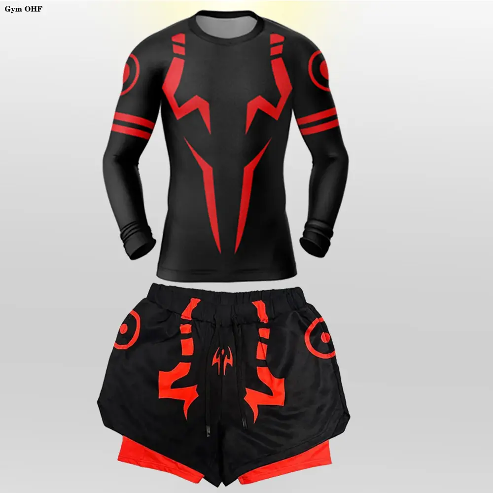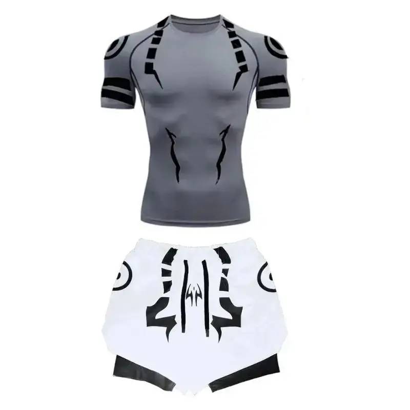 Anime Compression Set Fitness Suit ✨ Anime Jujutsu Kaisen Compression Set for men. This fitness suit includes a quick-dry 3D compression shirt and gym shorts. Perfect for running and workouts, it offers sporty style and comfort. Ideal for those seeking a versatile sportswear option. 🏋️♂️ This set is ideal for men who engage in running, workouts, and other sports activities. It offers both functionality and style, making it a versatile choice for your sportswear needs. 🏋️♂️
