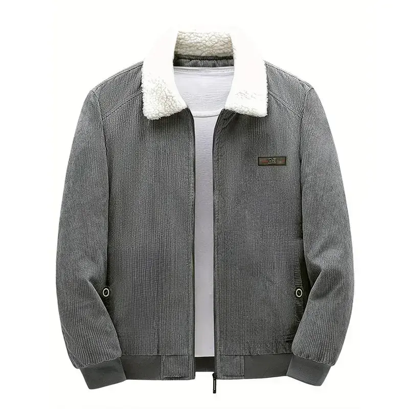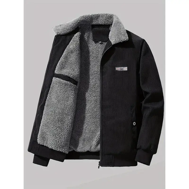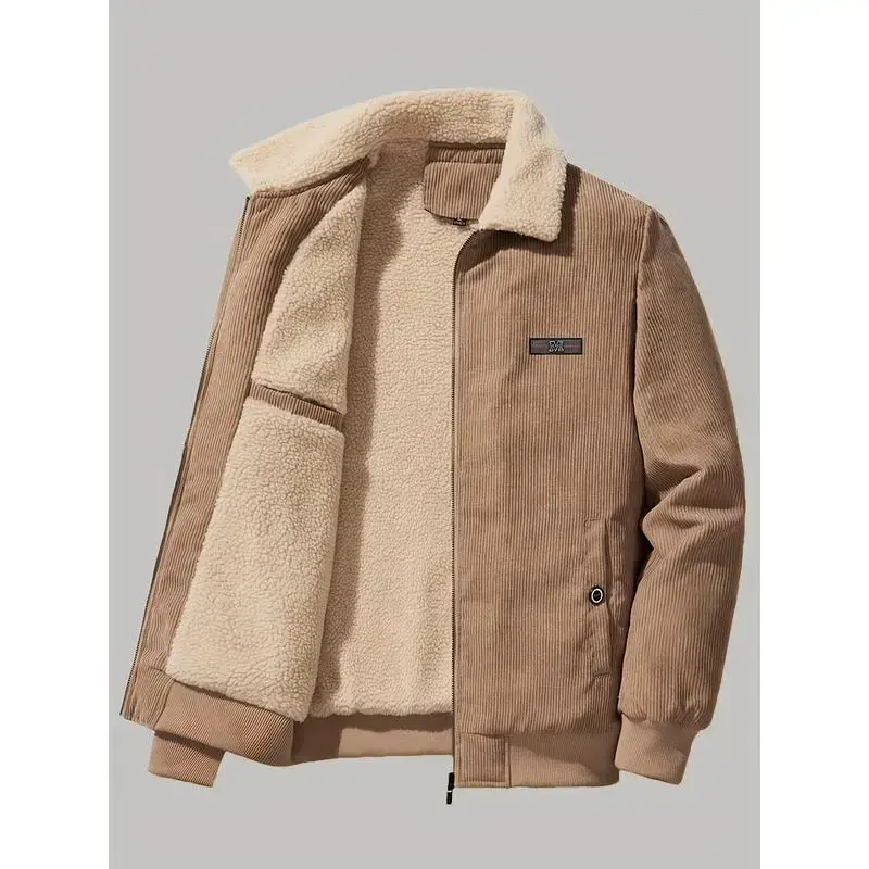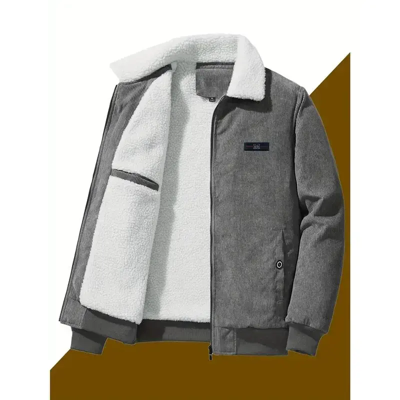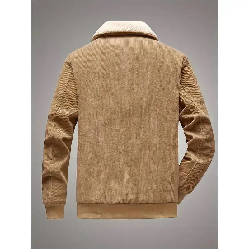 [Vintage Corduroy Fleece Jacket] Men's Vintage Corduroy Fleece Jacket, Classic Zip-Up Winter Coat With Pockets, Machine Washable