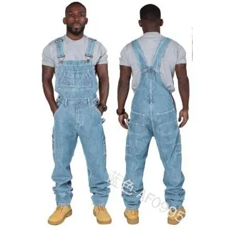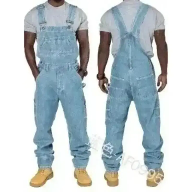 Mens Jeans Overalls Men Jumpsuit Pockets Casual Loose Long Denim Pants Straight Rompers Autumn Plus Size Punk Biker One Piece Menswear Trouser Blue Motocross