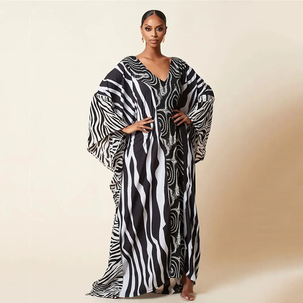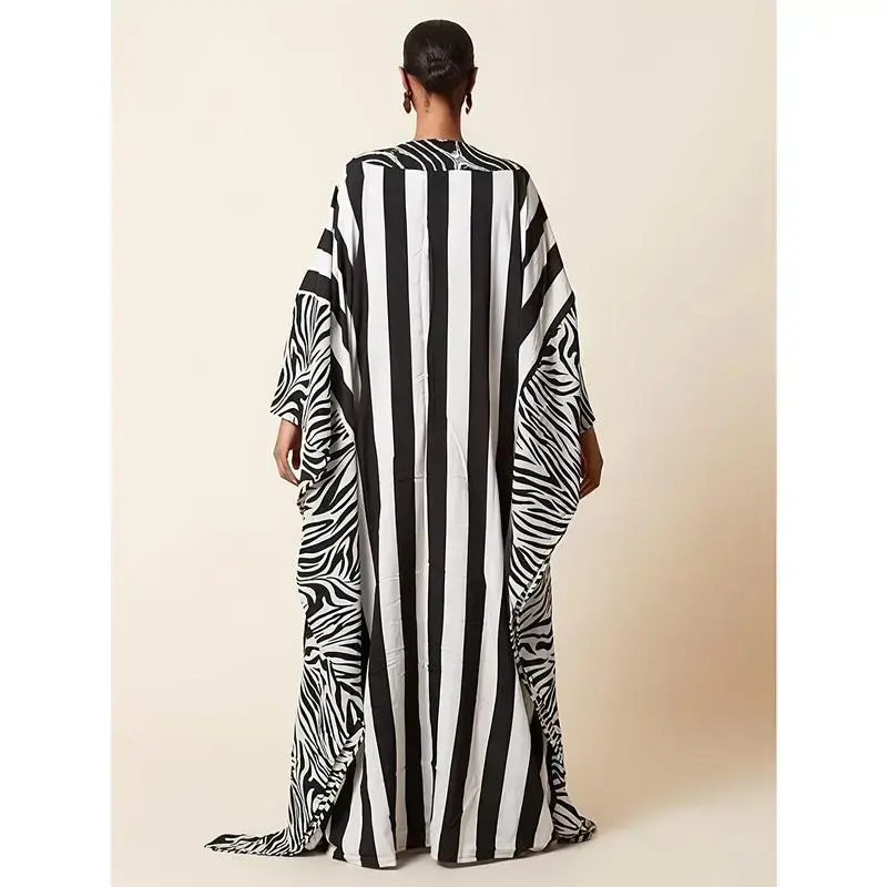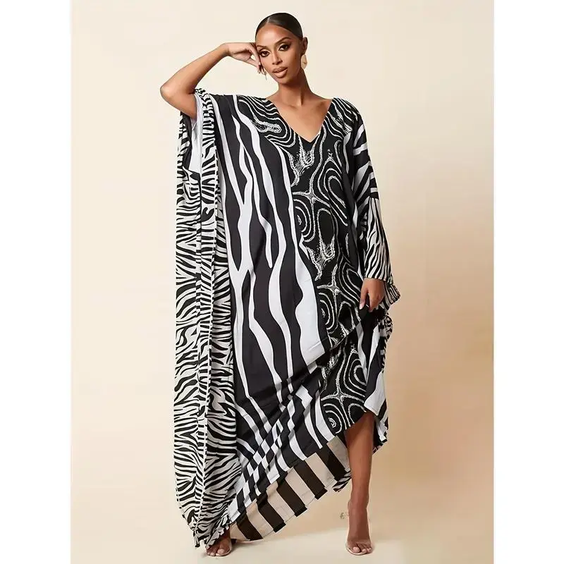 Elegant Women'S Kaftan Dress - Colorful Abstract Print, Long Sleeve, Flowy Beach Cover-Up with Side Slit, Non-Stretch Fabric, Perfect for Spring & Summer, Beach Coverup | Bohemian Style | Printed Kaftan