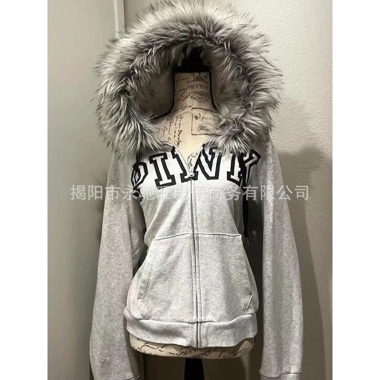 gray velvet thickened hooded sweatshirt jacket for women retro slim hottie design warm zipper jacket