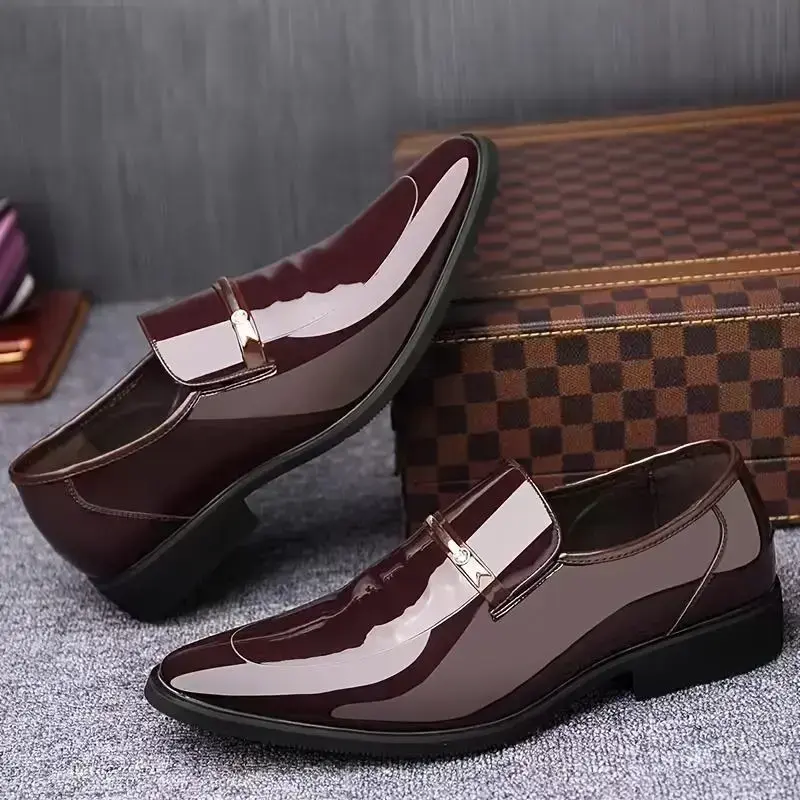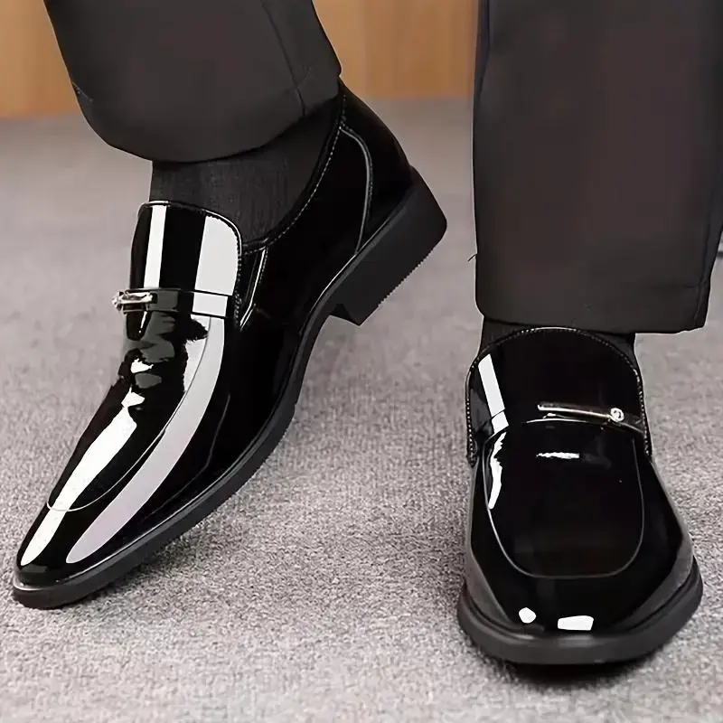 () Large Size Men's Fashionable Patent Leather Formal Shoes, Comfortable Non-slip Rubber Sole Durable Formal Shoes Suitable For Men's Outdoor Activities