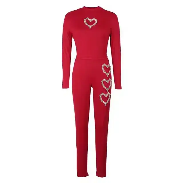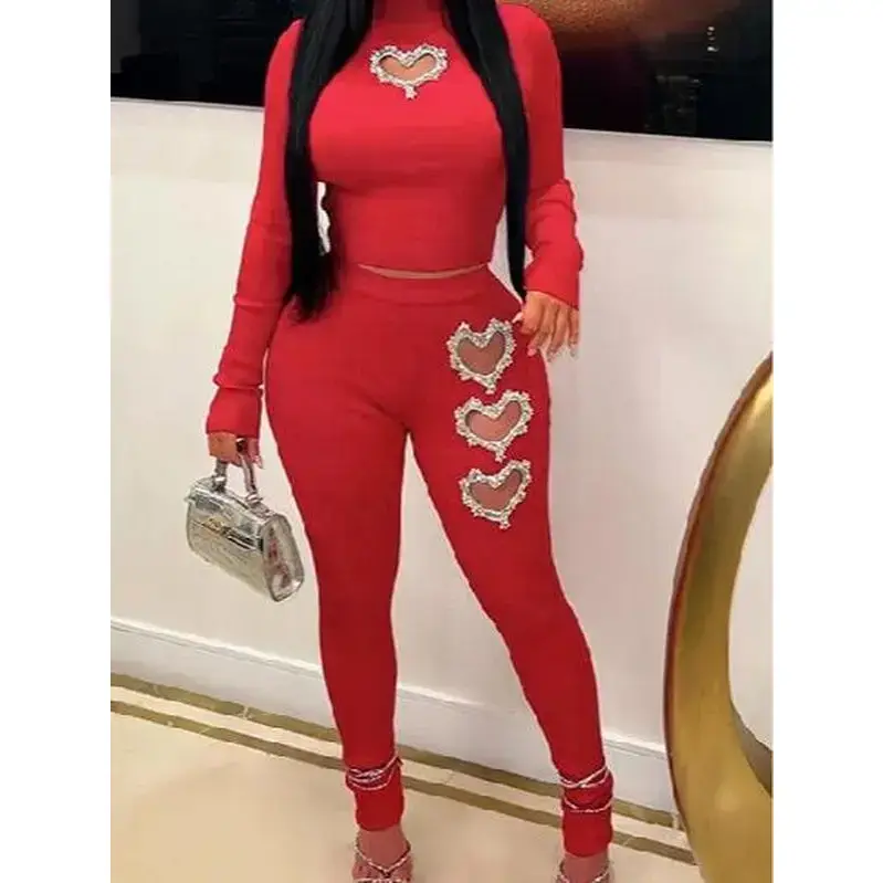 Metallic Heart Accessory Top High Waist Skinny Pants SetGift