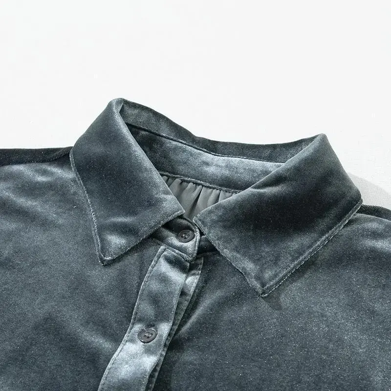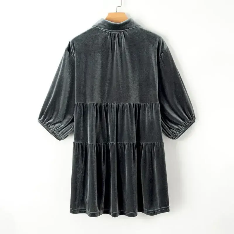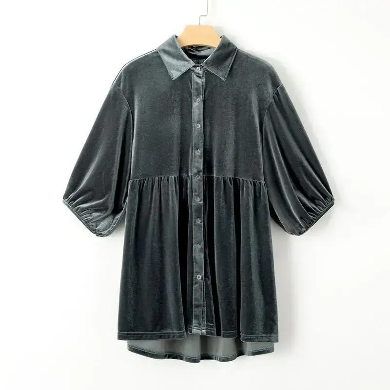 This velvet tunic shirt tops features a babydoll silhouette that flatters any body shape./It provides a comfy and relaxed fit style that accentuates your curves./The 3/4 sleeves add a touch of femininity and sophistication./A velvet dress can be styled as a top with leggings or simply as a mini dress./Elevate your wardrobe with the Velvet Tunic Dress! The design is simple yet elegant, making it a staple piece.You can pair with different accessories and outfits.Womens shirts dress are chic and appealing.