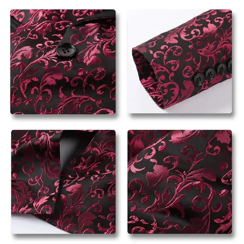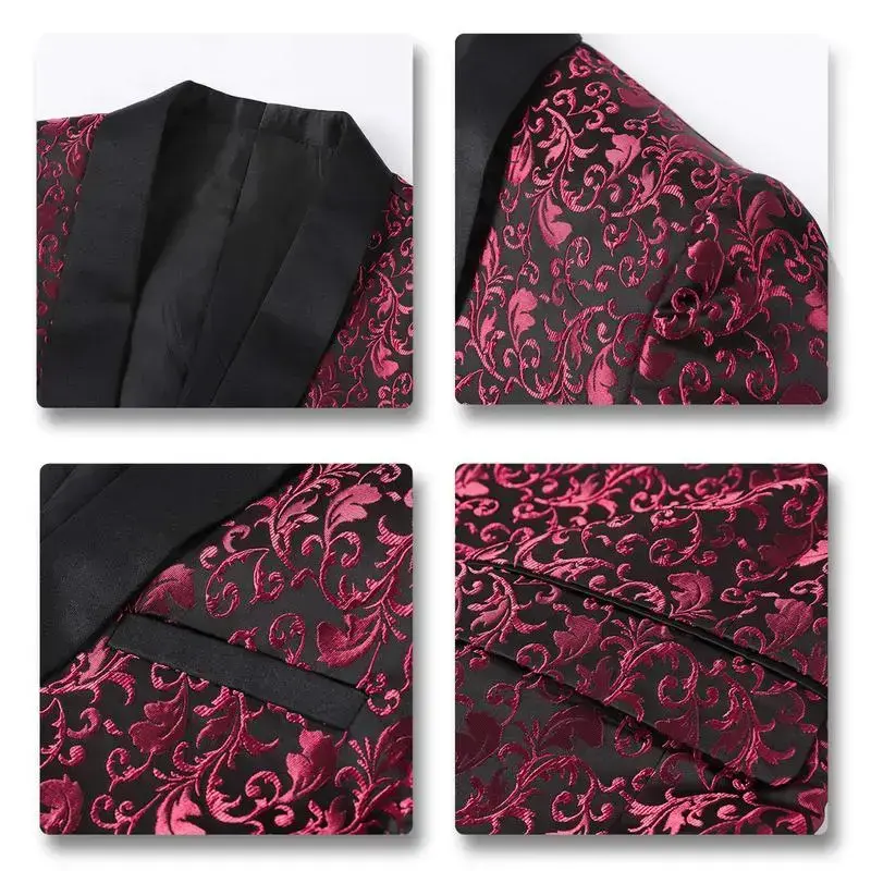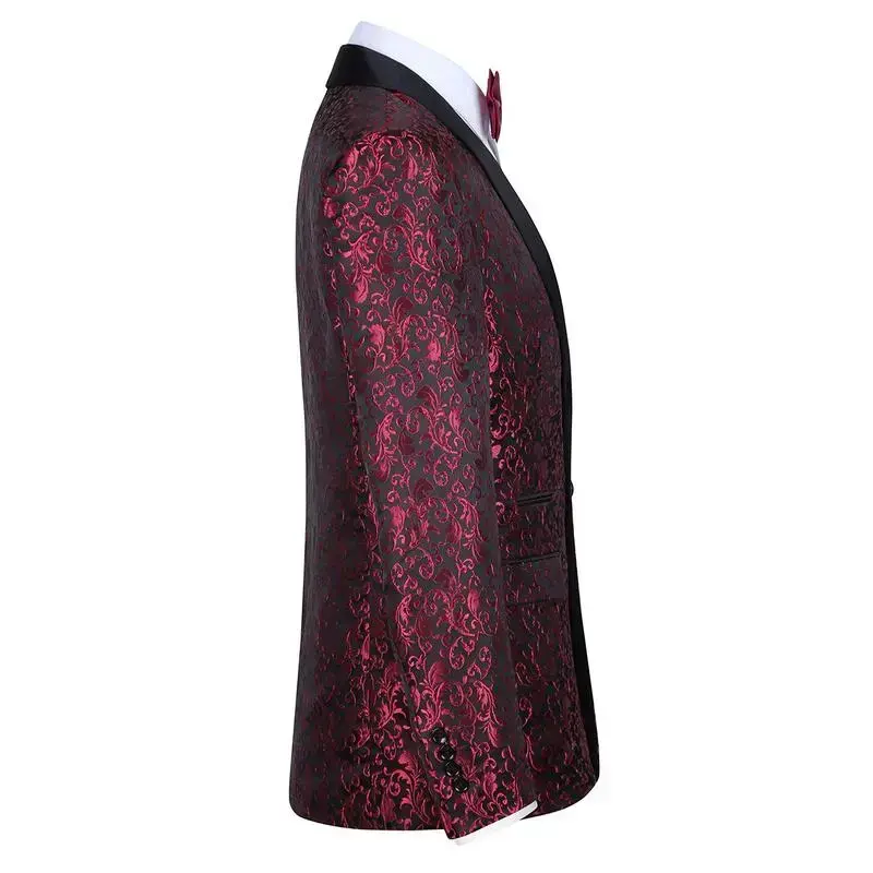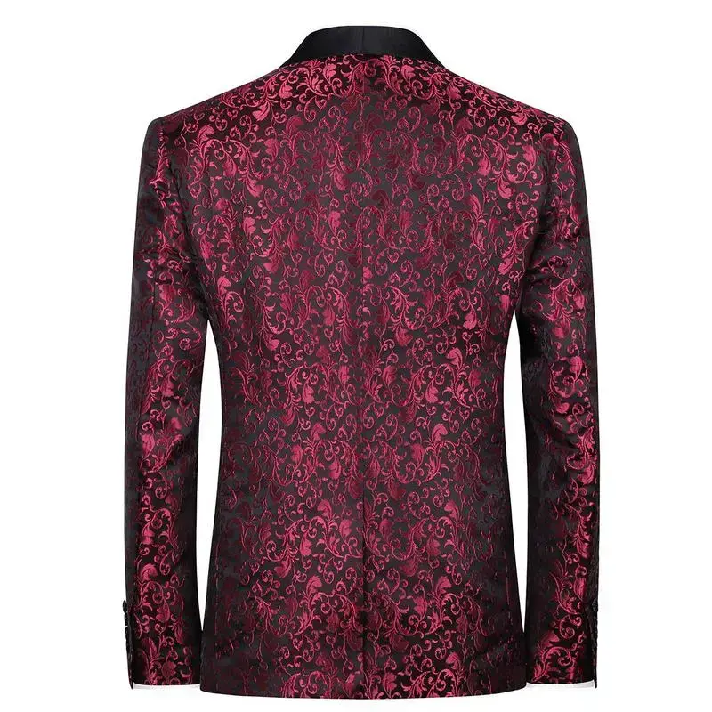 Men's Two-Piece Floral Jacquard Dress Suit Set Single Button Printed Dinner Jacket and Matching Trousers prom suit party suits