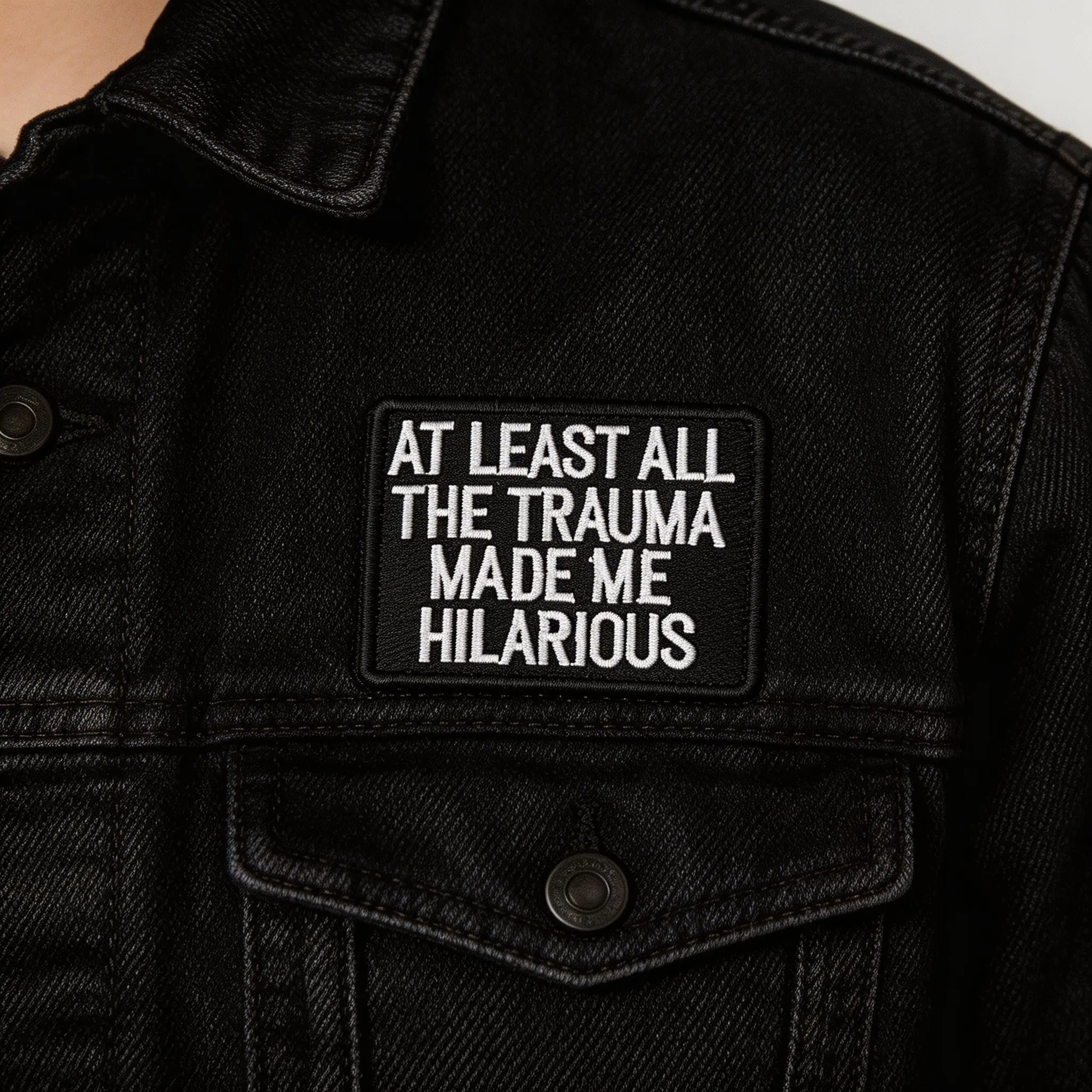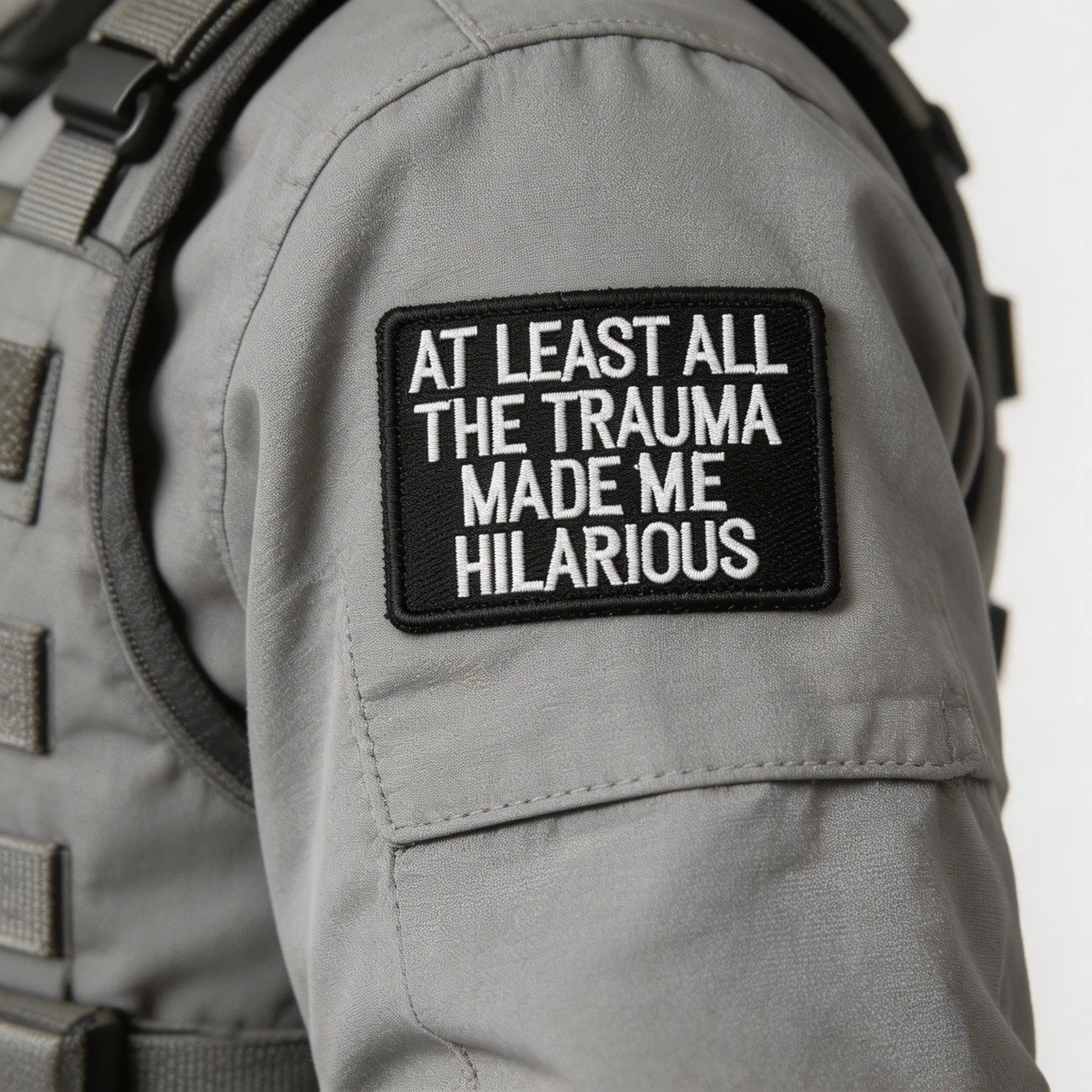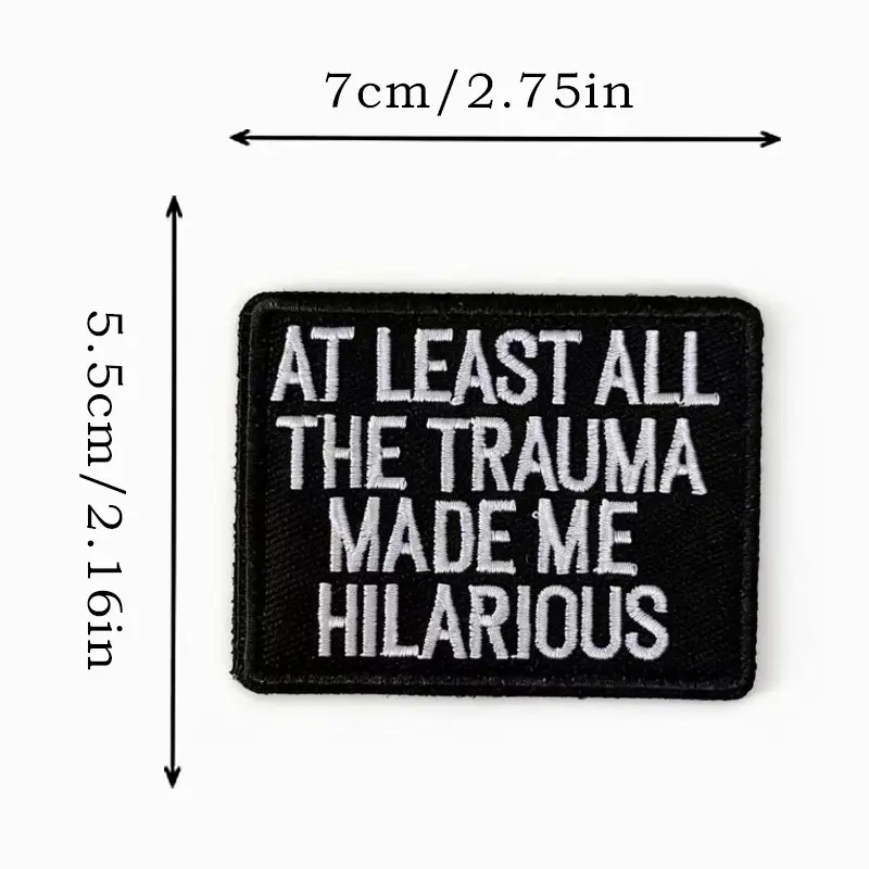 “At Least All The Trauma Made Me Hilarious” Funny Patch Velcro Tactical Badge – Dark Humor Embroidered Patch