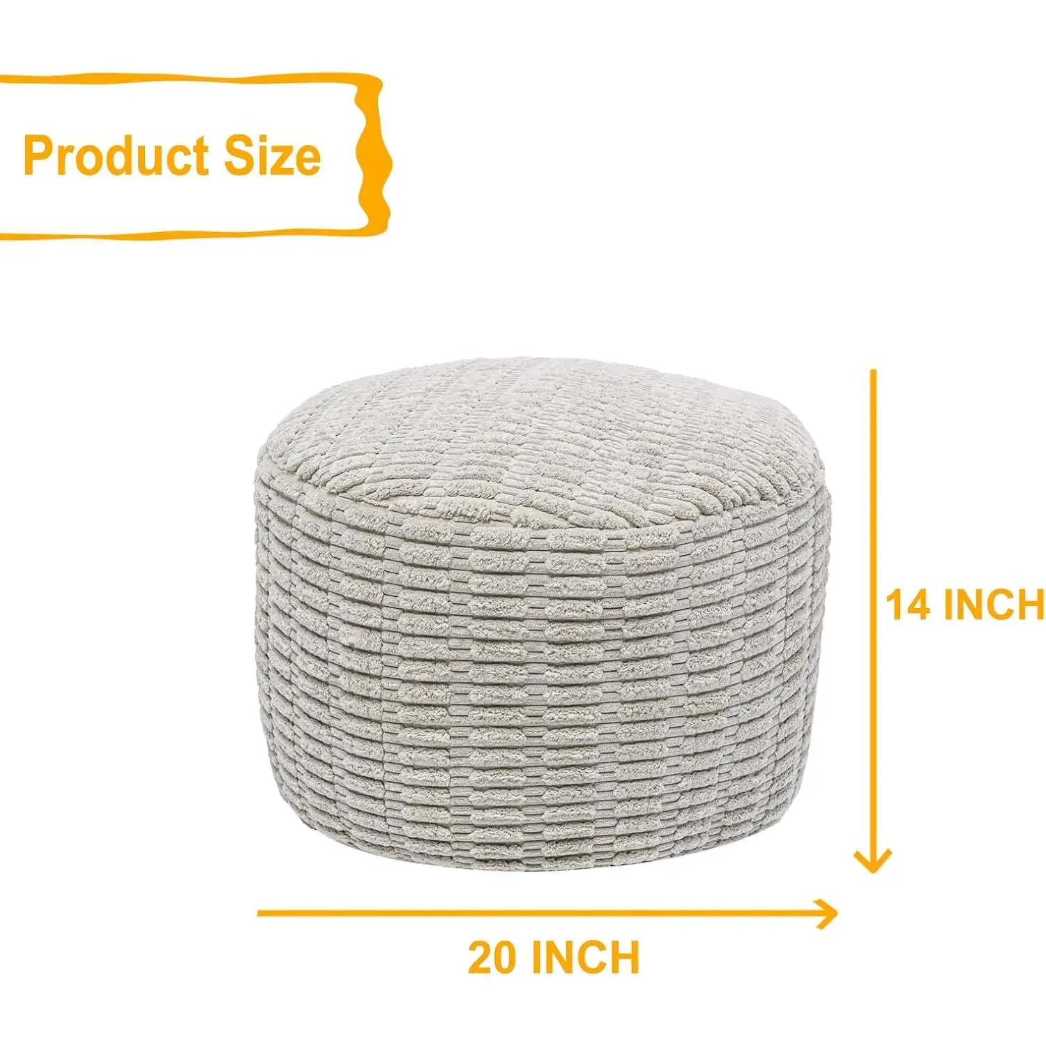 Round footstool Footrest Artificial fur beanbag footrest Floor chair leg pads Suitable for Living Room,Bedroom or wedding gift 20x20x14 Inch(Light Gray)