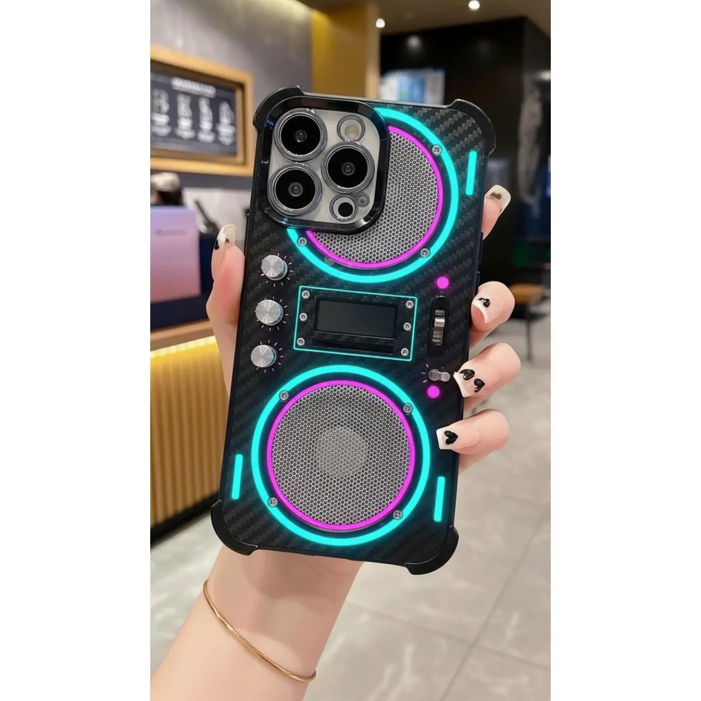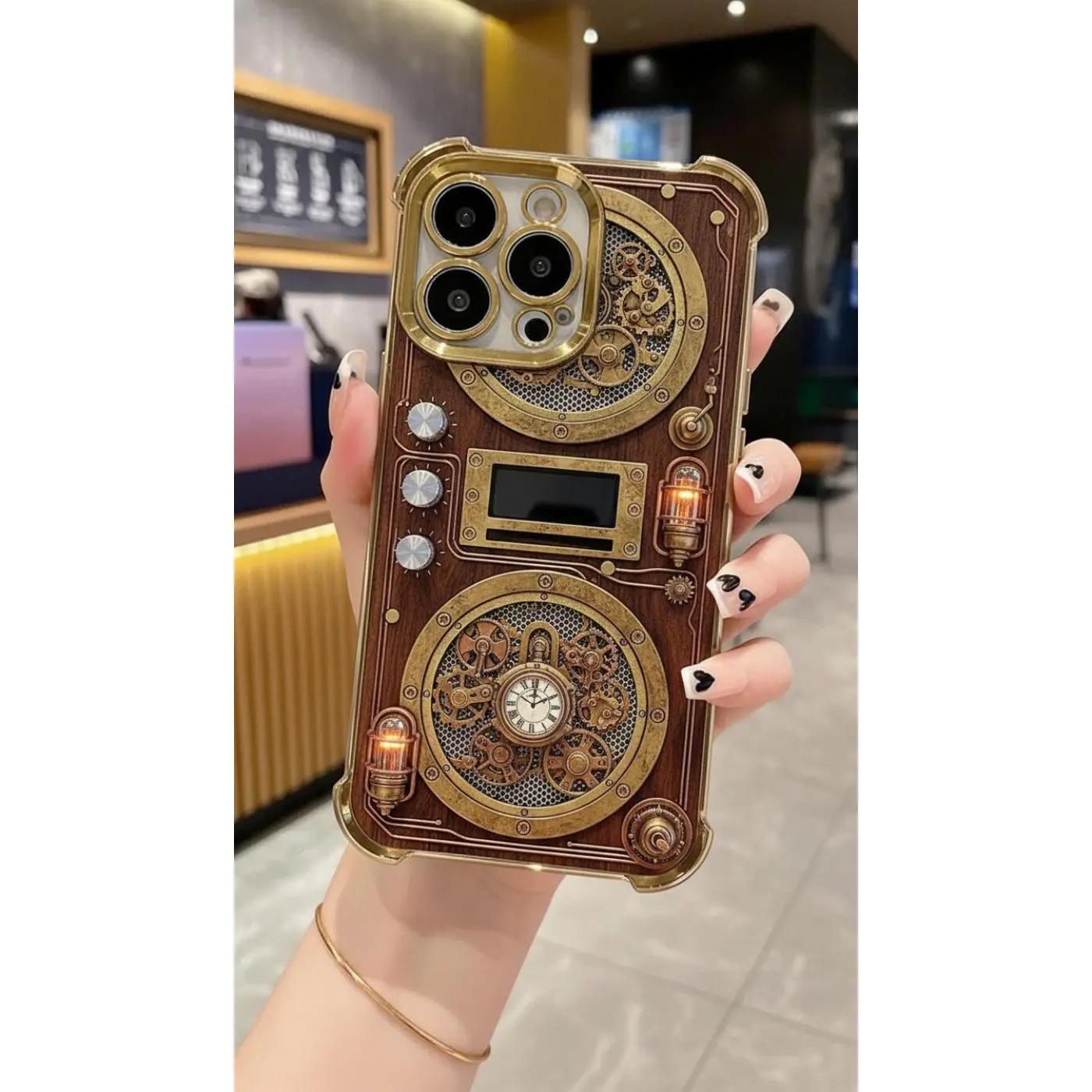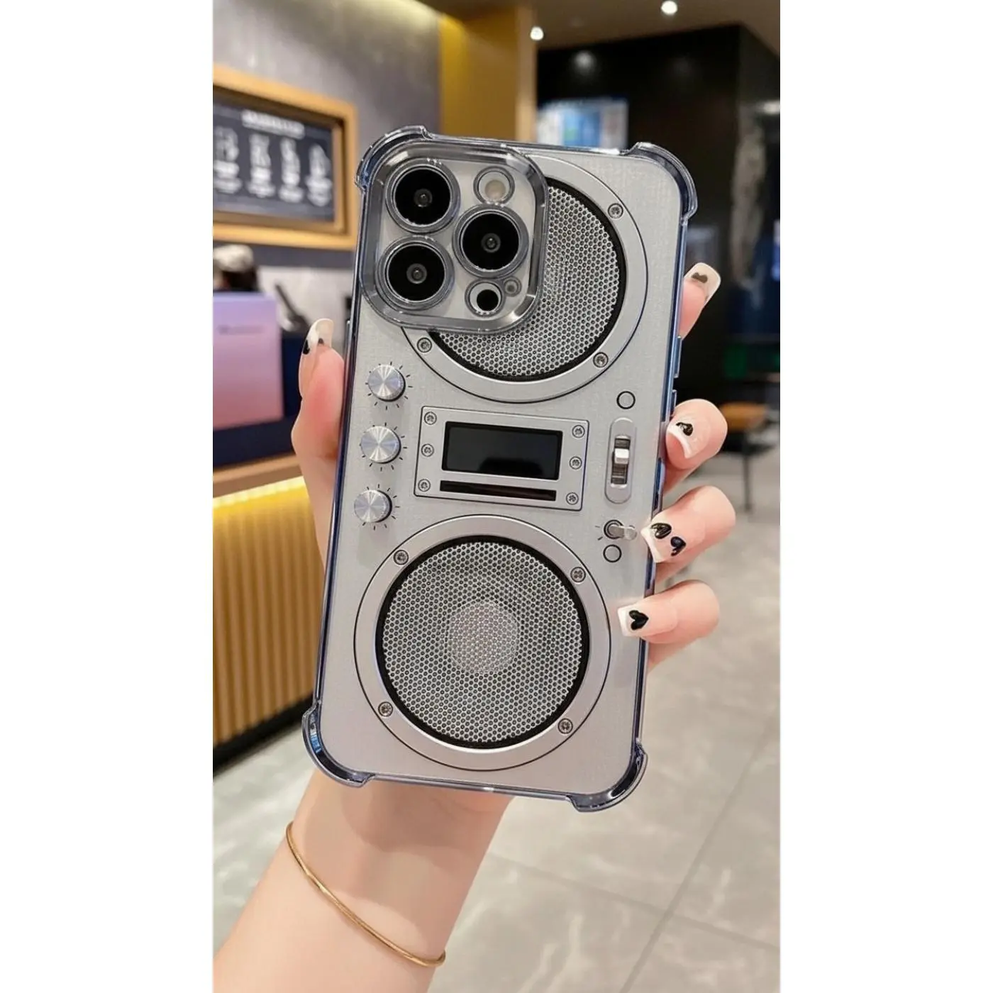Silver gray trendy phone | Used mechanical style radio phone case suitable for iPhone 17/16/15/14/13/12/11 ProMax transparent airbag anti drop retro sound design protective case with high aesthetic value