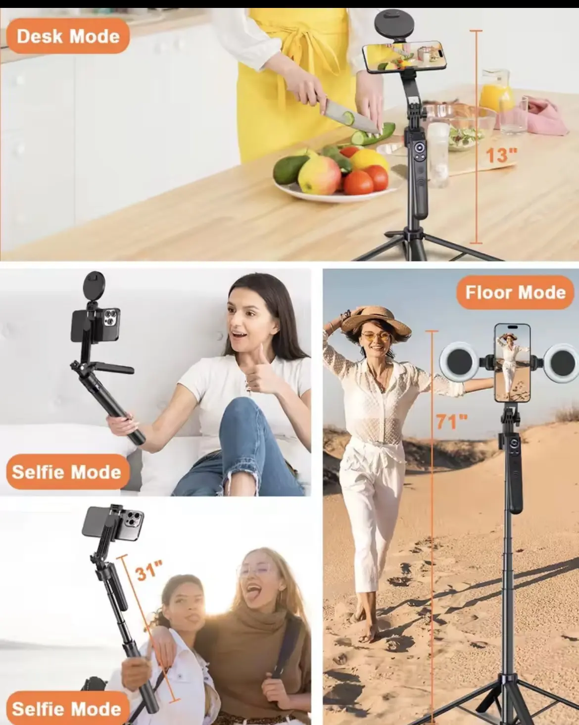 ·Adjustable Height (Up to 71”) – Perfect for full-body or close-up shots