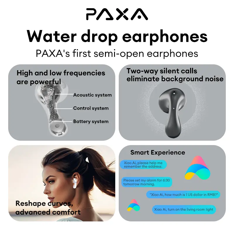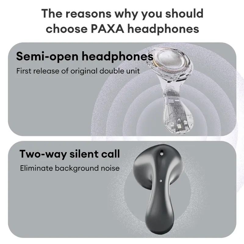 PAXA PA-L02 Wireless Bluetooth Headphones, Powerful Sound Effects for Music, Dustproof & Waterproof Sports Earbuds for Running, Workout, Audio