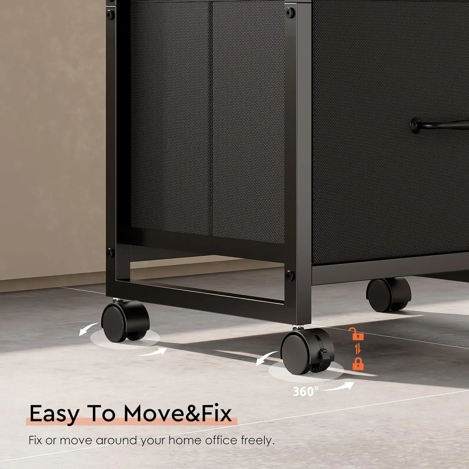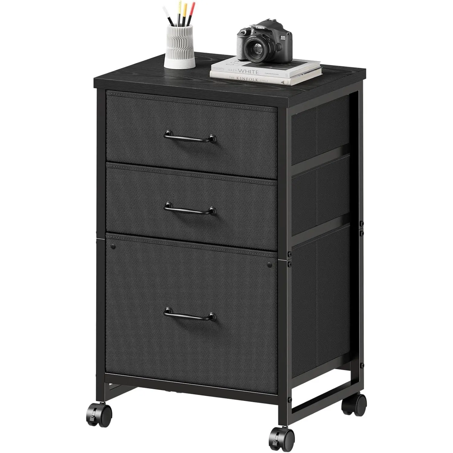 Three-drawer mobile file cabinet with wheels, fabric vertical file cabinet, suitable for A4 or Letter size documents, suitable for home office, black