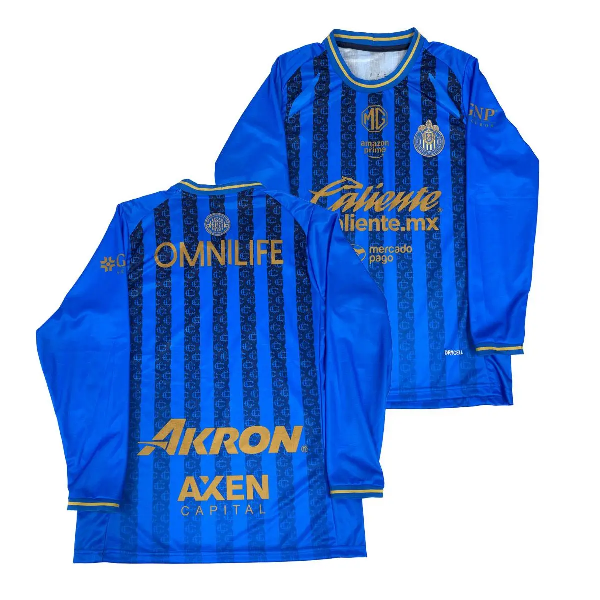25 26 Chivas de Guadalajara 3rd Away Soccer Jersey Mexico LIGA MX Fans Version Long Sleeve Jersey Quick Dry Football Jersey Blue Quick-Dry