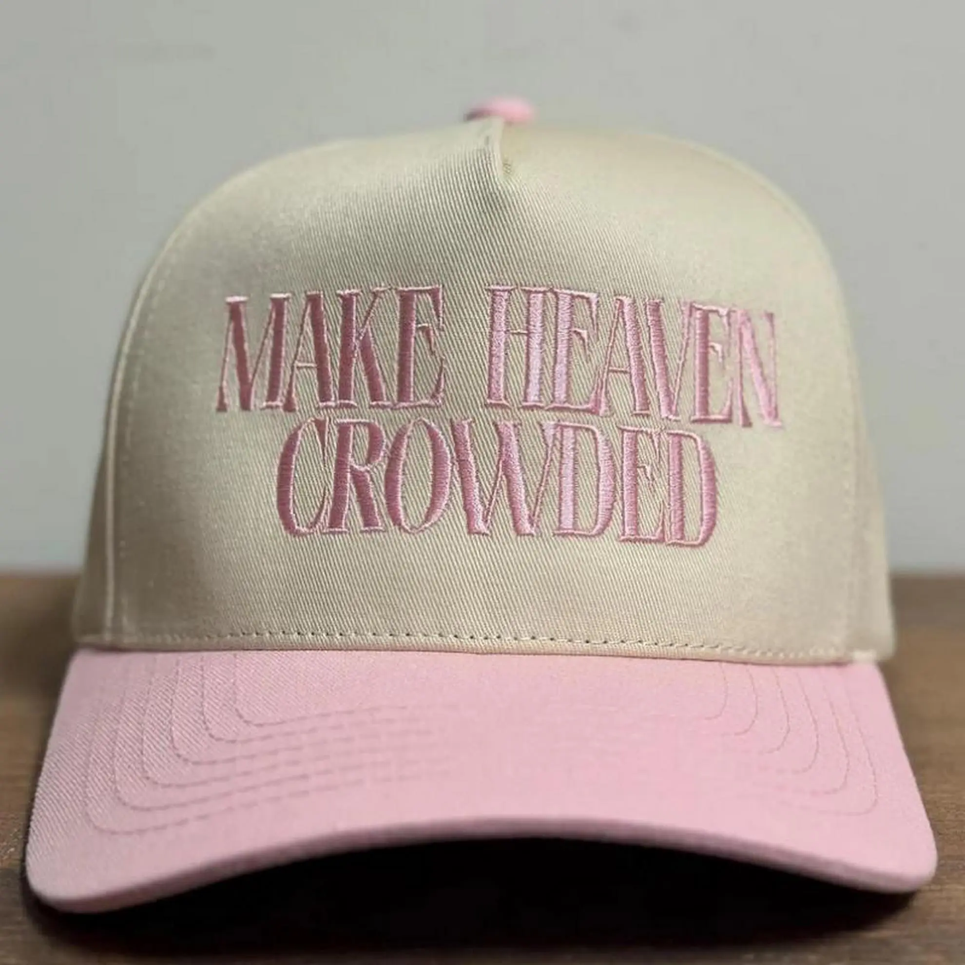 Showcase your faith with purpose and style.This two-tone trucker hat combines a neutral crown with a bold contrasting bill, featuring striking "MAKE HEAVY CROWDED" embroidery.Designed to be both understated and impactful, it’s perfect for everyday wear while opening doors for meaningful conversations.