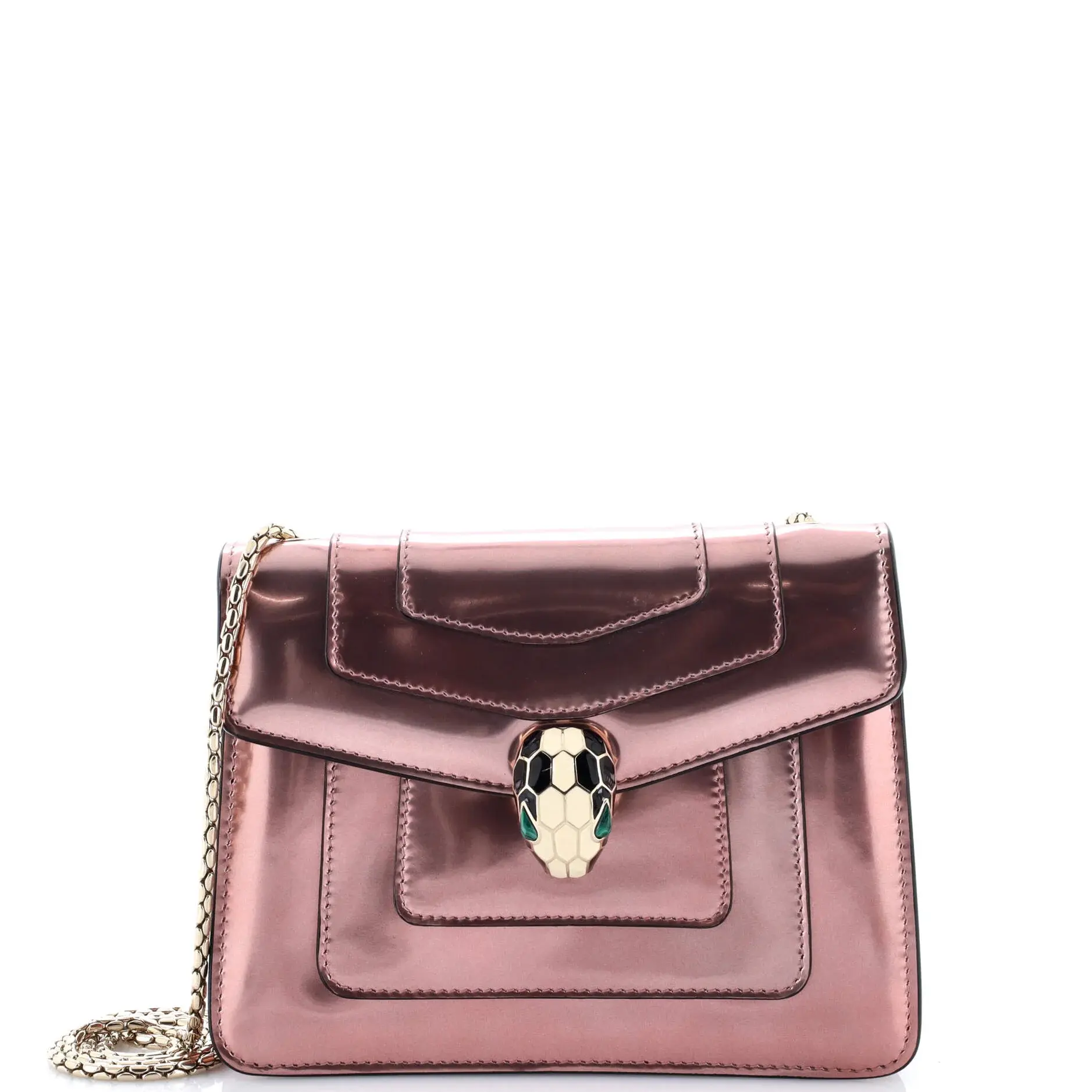 Pre-owned Bvlgari Patent Leather Shoulder Bags Serpenti Forever Square Shoulder Bag Metallic Leather Small by Rebag
