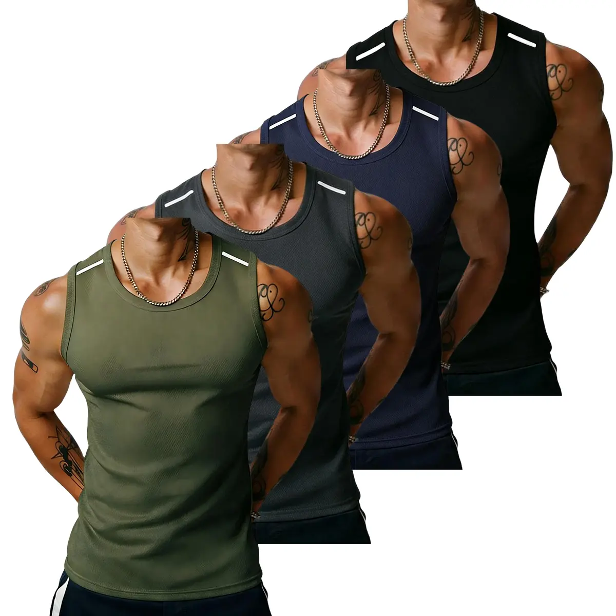 Military Green + Dark Gray + Blue + Black
