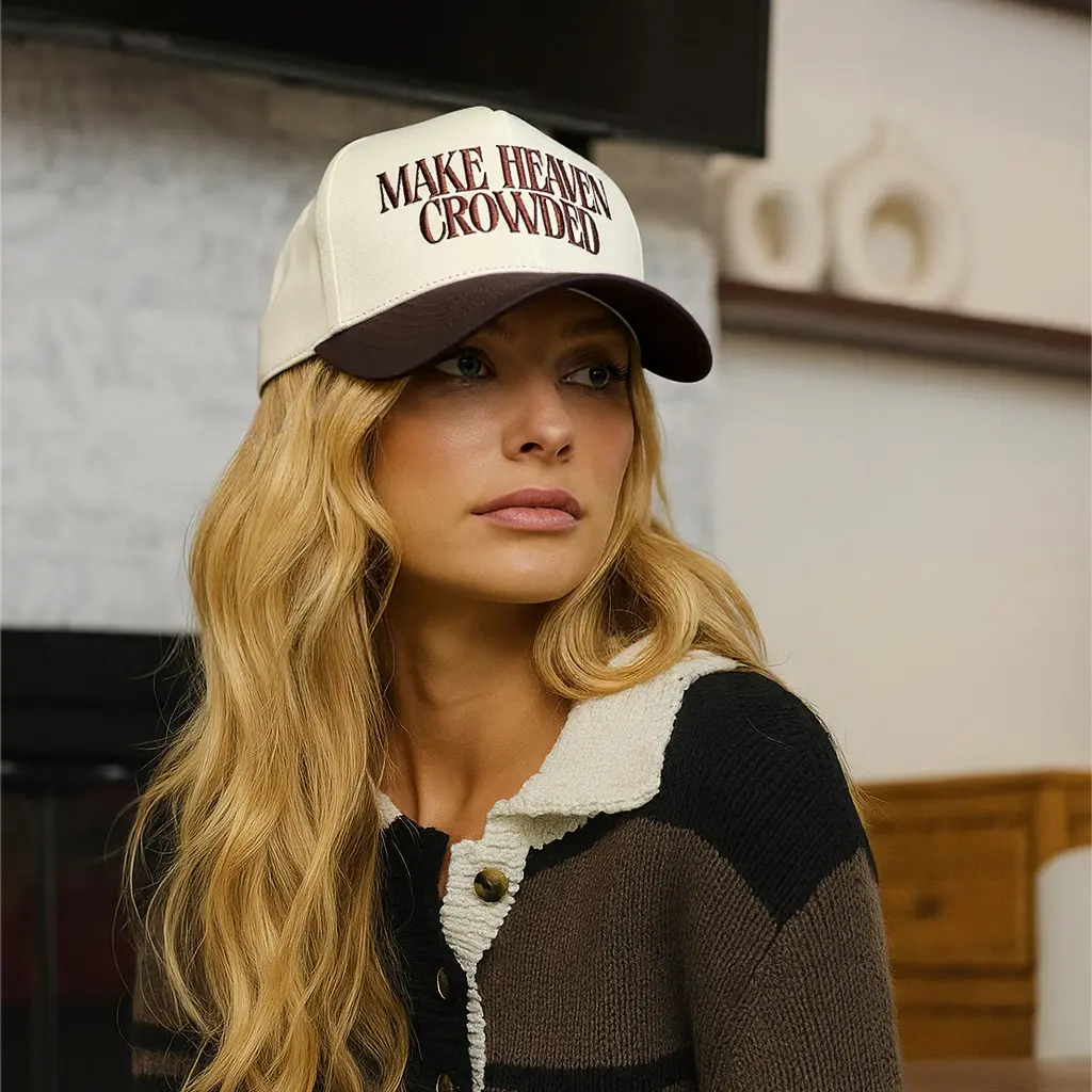 MAKE HEAVEN CROWDED Two-Tone Trucker Hat| Embroidered Faith Cap| Adjustable Christian Snapback Gift