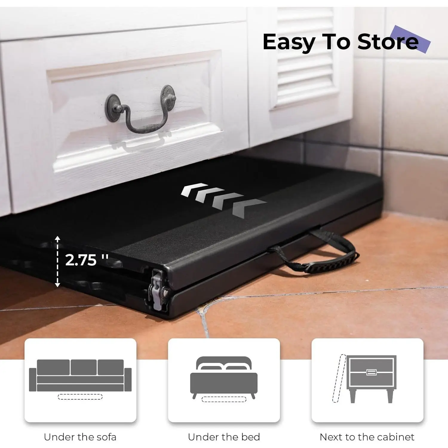 Folding Table 4 Foot Portable Heavy Duty Plastic Fold-in-Half Utility Table Small Indoor Outdoor Adjustable Height Folding with Carrying Handle, Camping and Party, Black