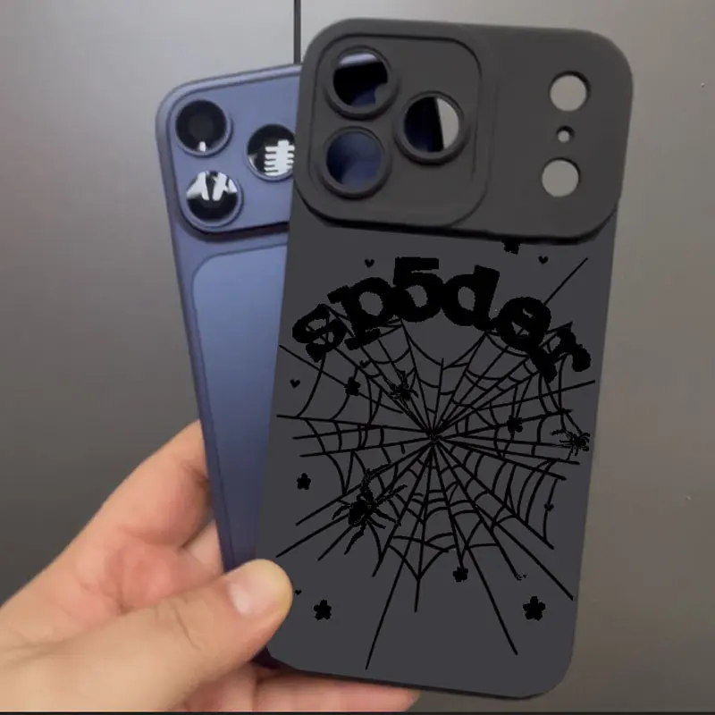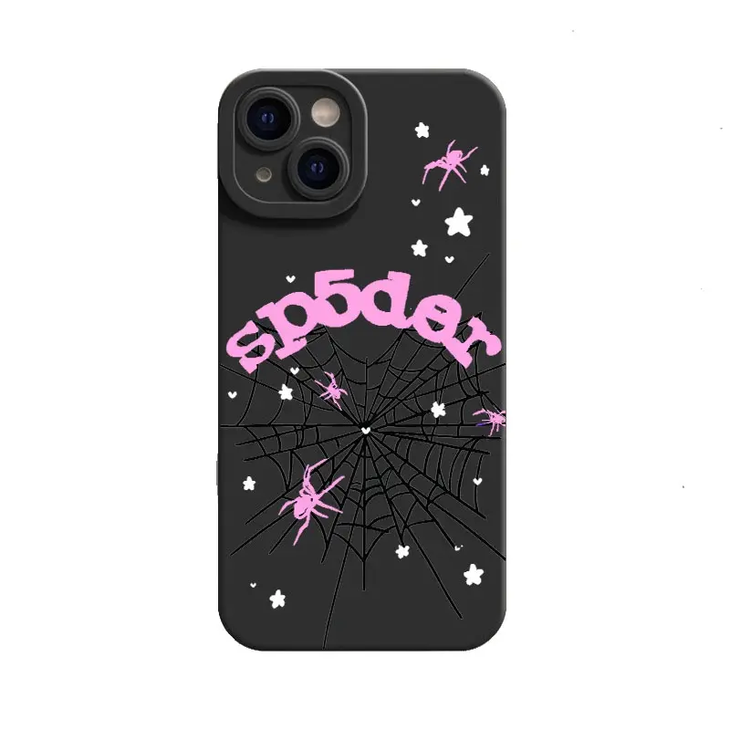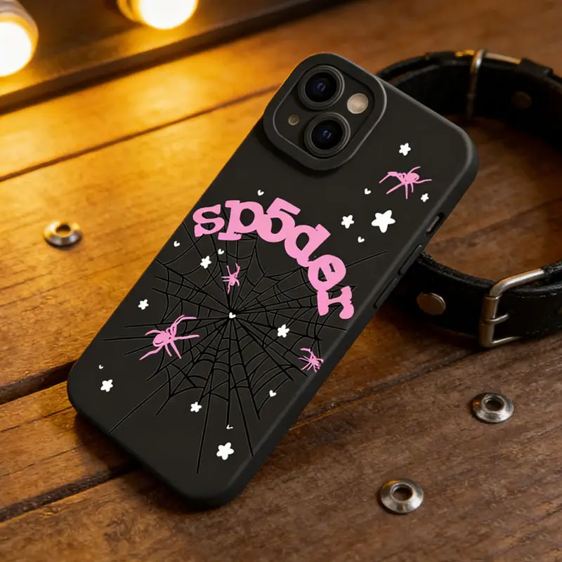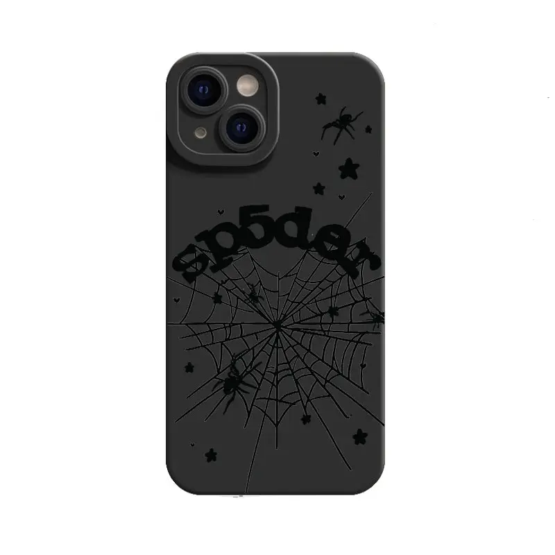 Dark Spider Web Design Phone Case with mysterious gothic style, soft black TPU material and full-body protection.