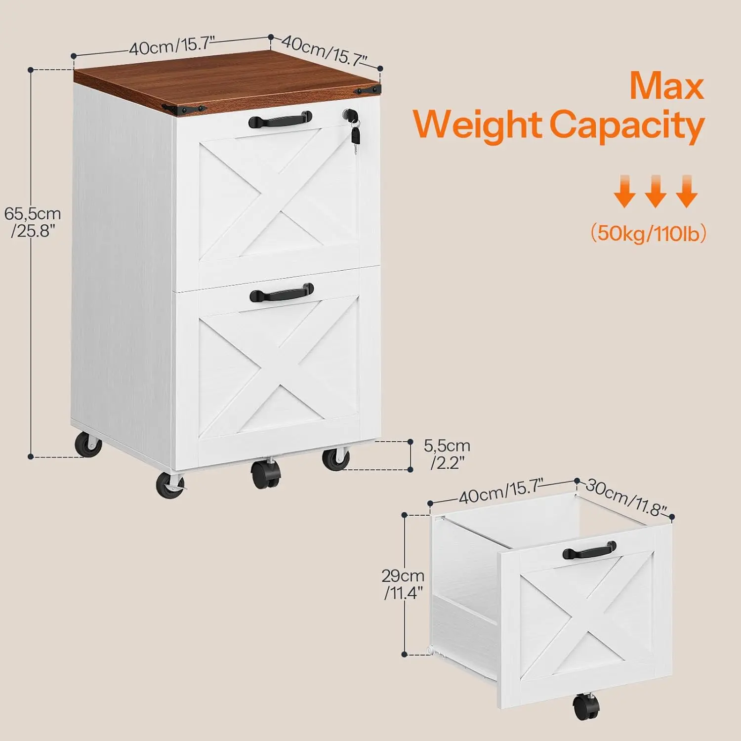 2 Drawer File Cabinet with Lock, Under Desk Mobile Filing Cabinet for Home Office, Wooden Farmhouse Office Storage Cabinet, Printer Stand Fits Letter and A4 Size,
