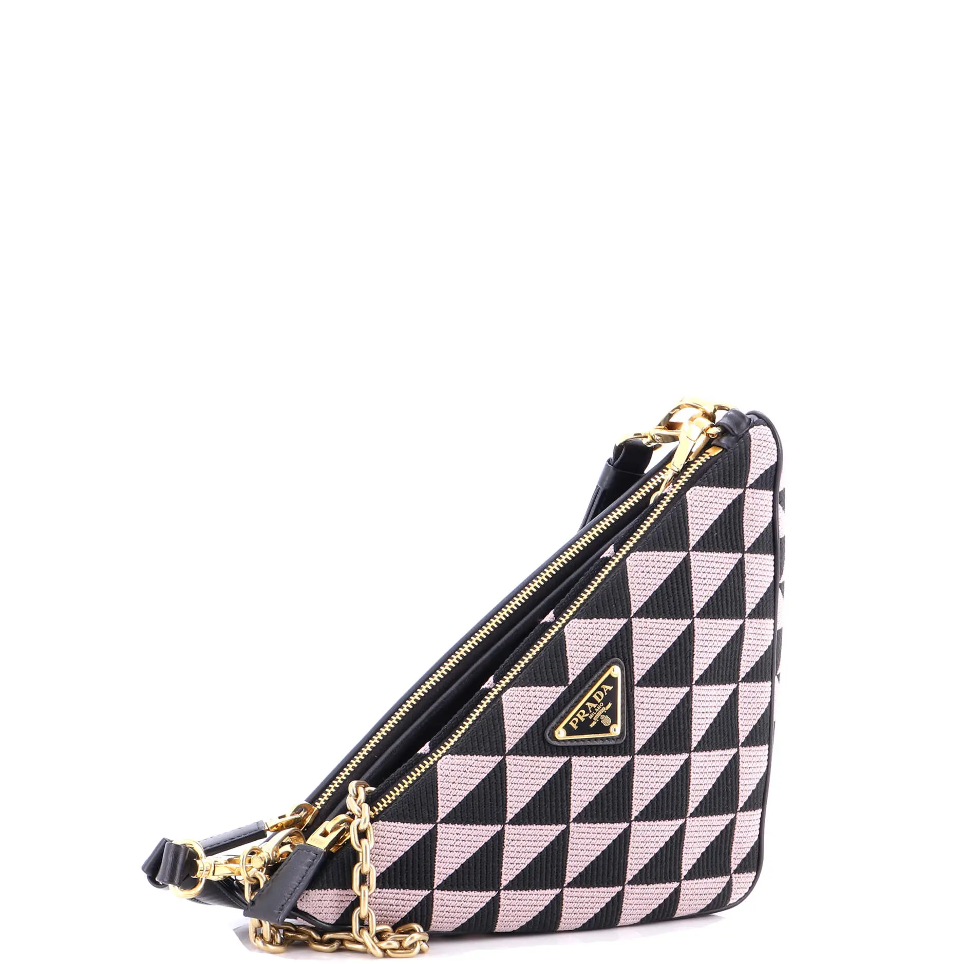Model: Double Symbole Triangle Bag Leather and Jacquard Mini