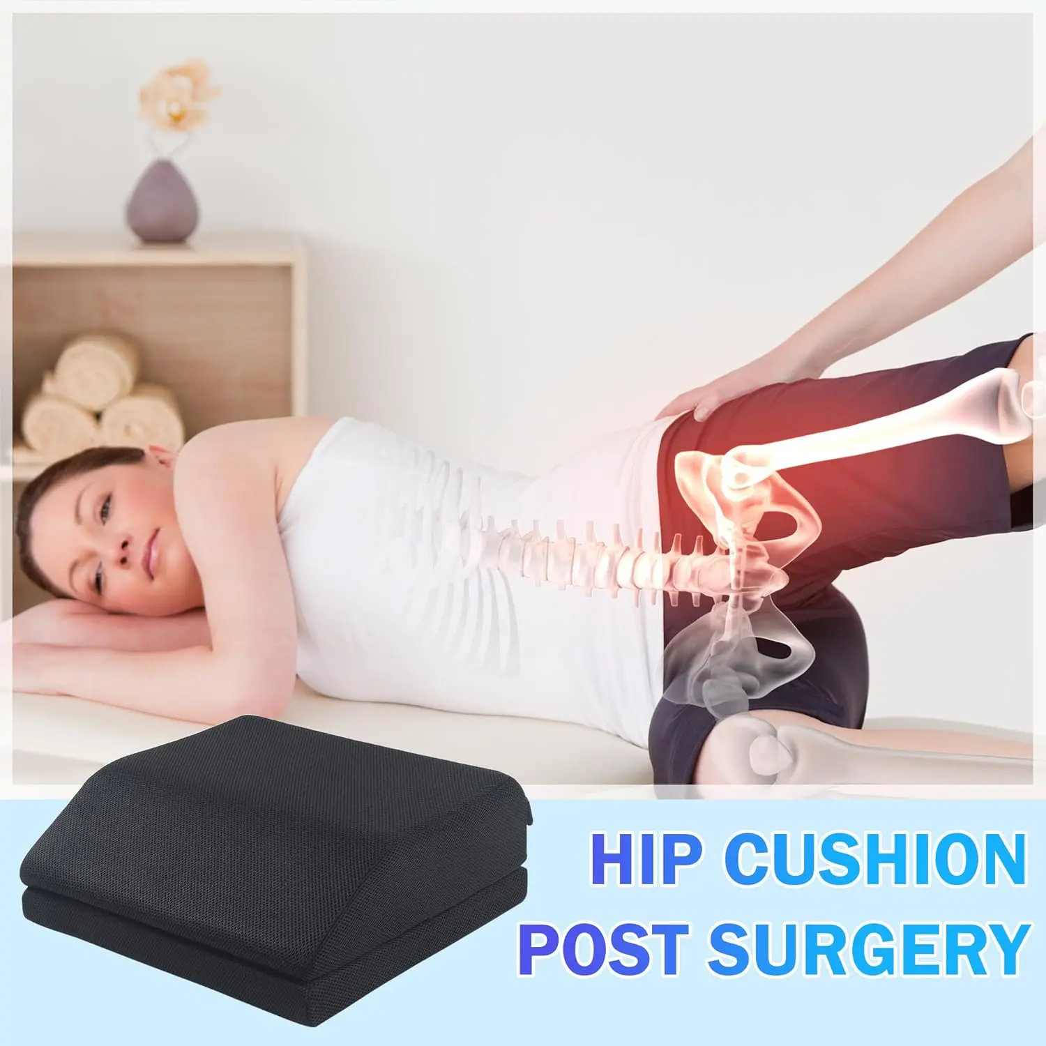 Adjustable Hip Cushion Post Surgery, Memory Foam Hip Replacement Recovery Aids with Strap and Anti-Slip Bottom, Chair Cushion for Long Sitting