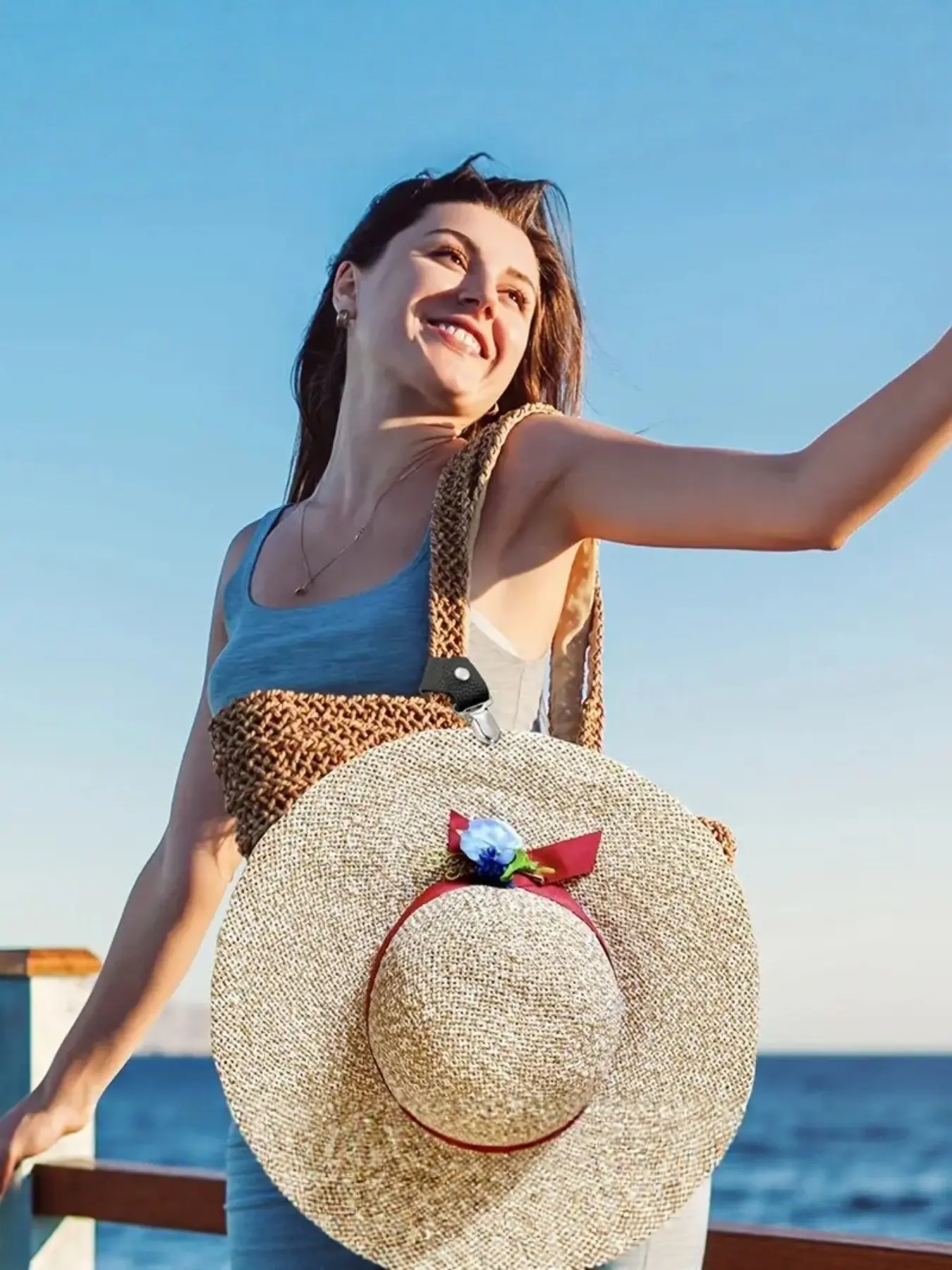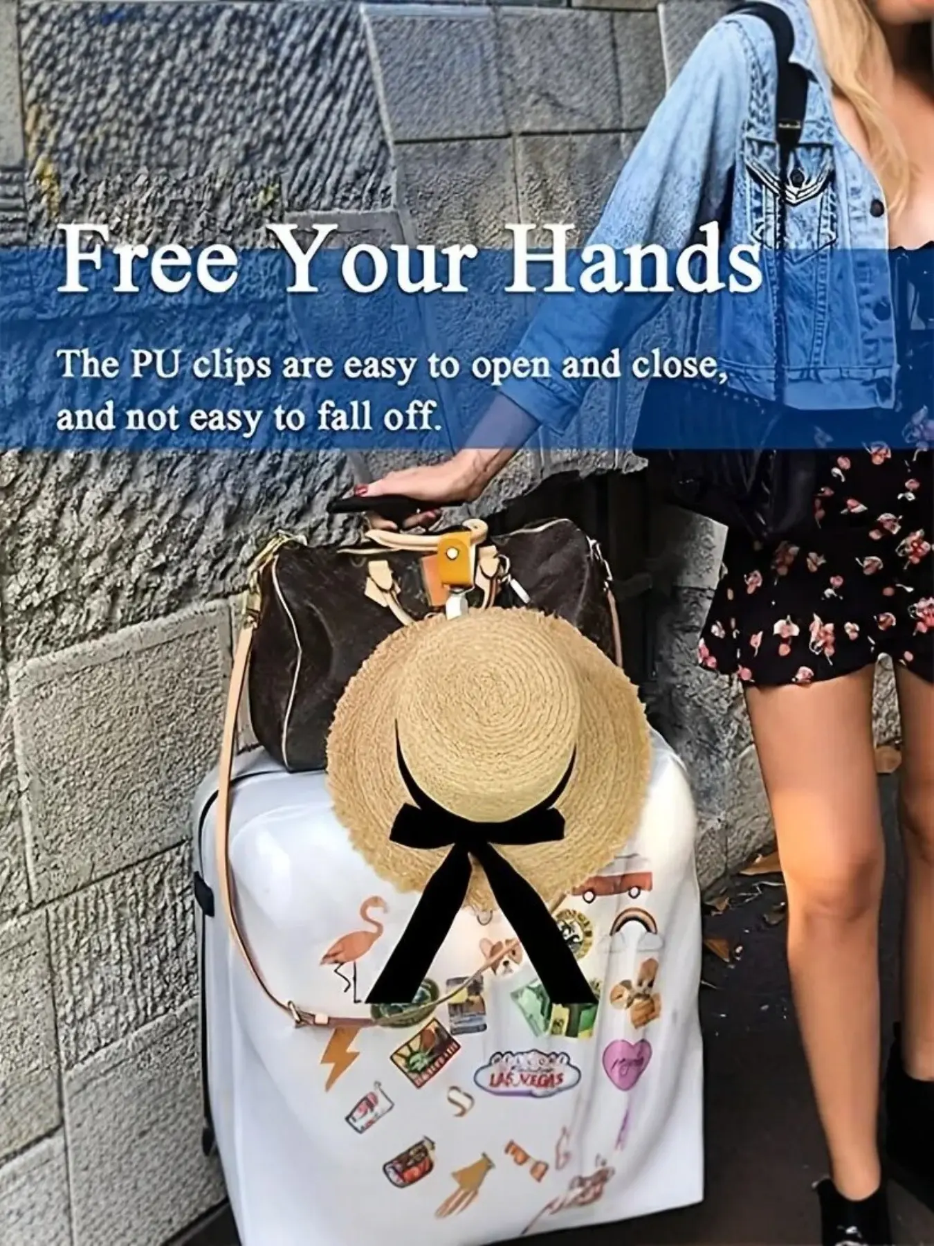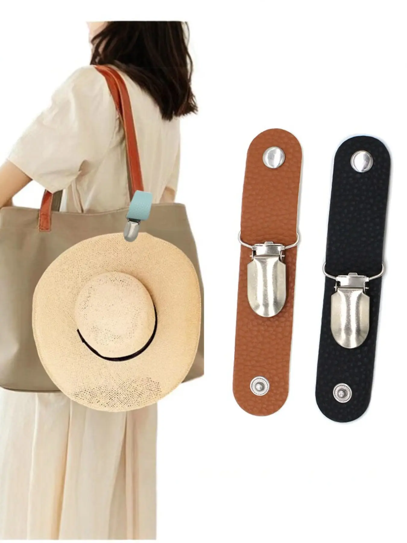 4 Pack PU Leather Multi-Functional Hat Rack Clips, Securely Hang Hats on Bags or Luggage, Travel Camping Outdoor Adventure, Compact Durable Easy Use