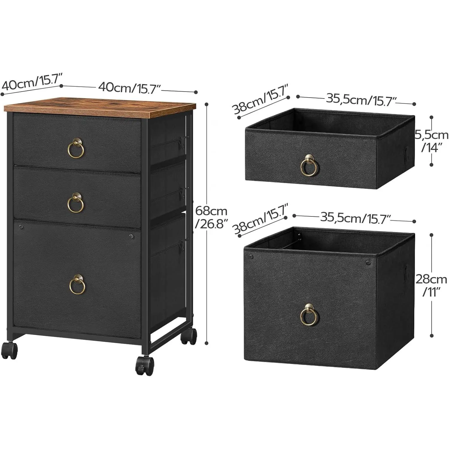 3-Drawer Mobile File Cabinet, Vertical Filing Cabinet, Under Desk Storage Drawers for Home Office, Rolling Printer Stand, A4/Letter-Sized, Nonwovens Drawer, Rustic Brown and Black