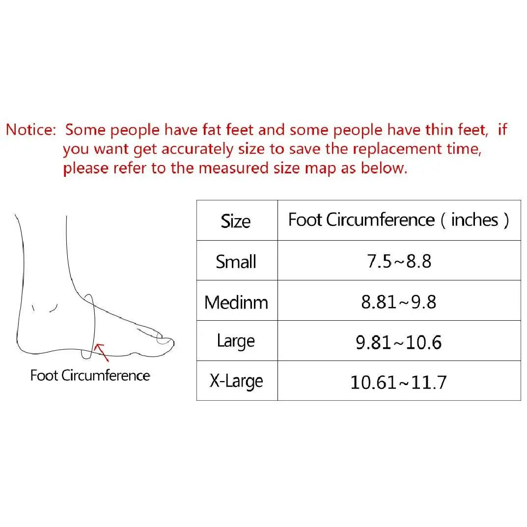 Foot Circumference: S (19-22.3cm), M(22.4-24.9cm), L(25-26.9cm), XL(27-29.7cm)