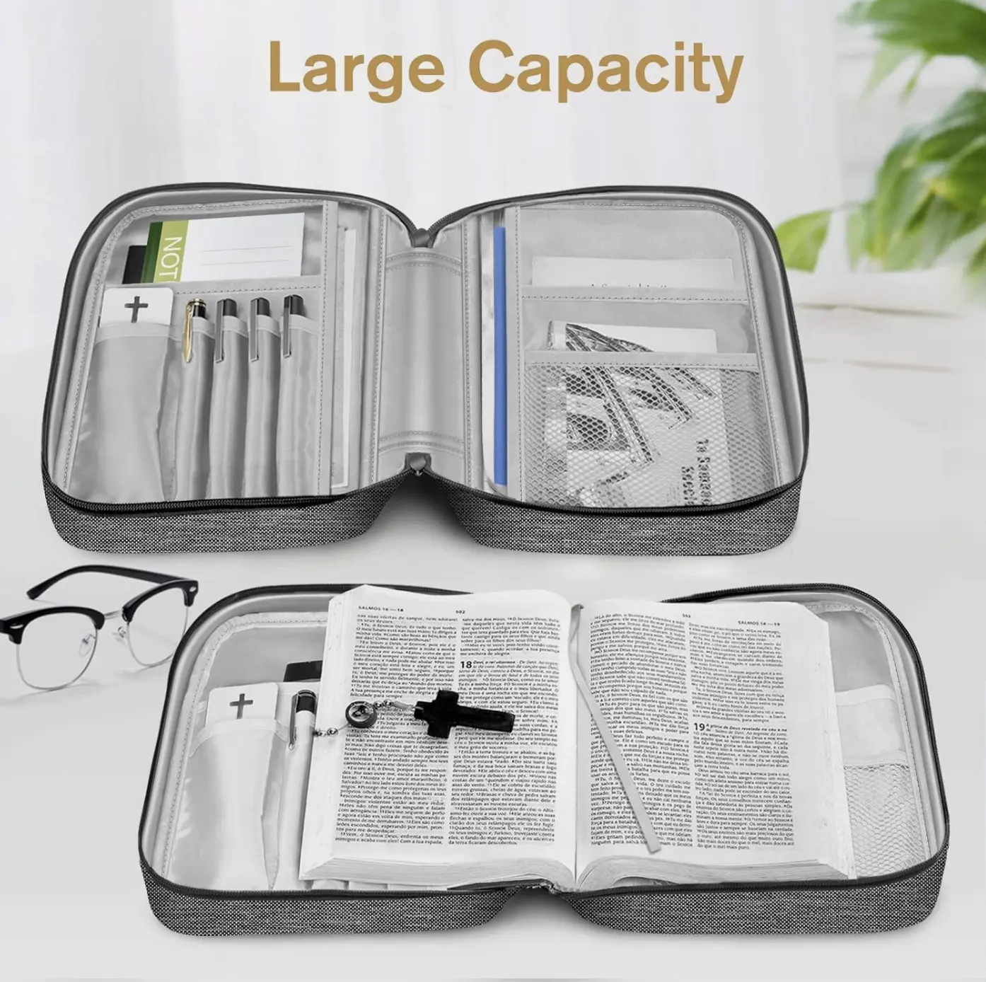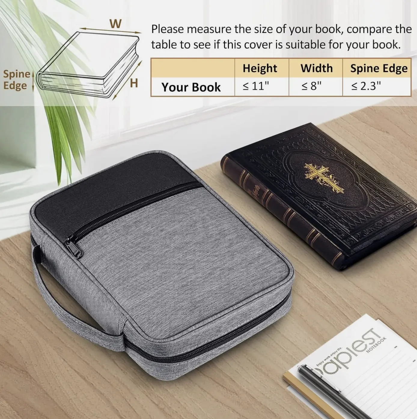 ️ Spacious & Organized: Fits standard or smaller Bibles (11" × 8" × 2.3") with front pocket and multiple inner compartments