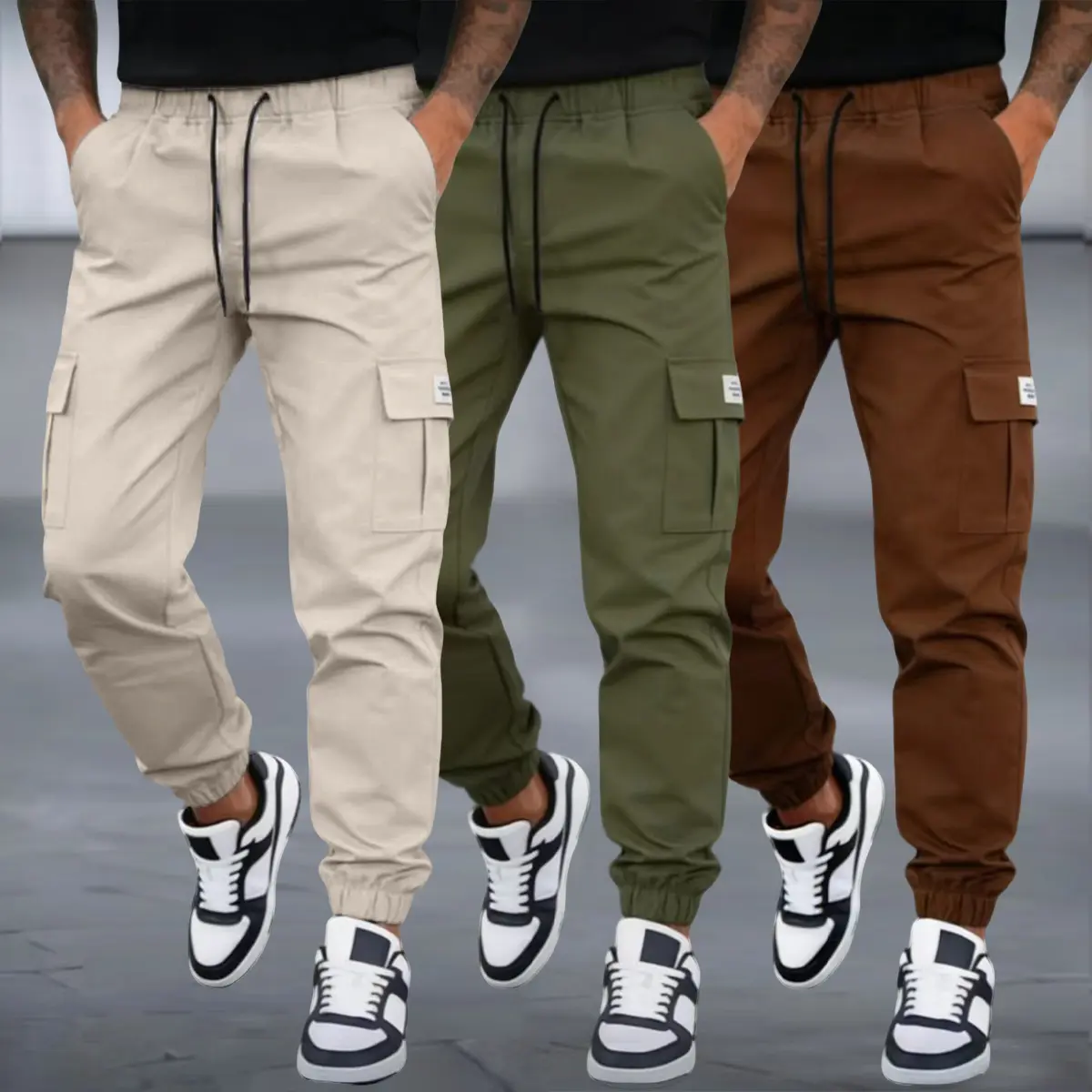 This men’s cargo jogger casual pants feature…High-stretch, skin-friendly twill fabricDesigned for breathability—no stuffiness when sweating—with a structured, well-shaped feel. Comfortable all year round with no added burden. Classic workwear design with large pockets that combine style and practicality; side 3D pockets easily store items like phones and keys. A drawstring elastic waistband fits various waist sizes; a slim fit without tightness, and leg cuffs that aren’t shape-restrictive—friendly for all body types—making it easy to create American high-street, outdoor functional, and casual commuter styles. Available in multiple colors, this basic item suits everyday commuting, outdoor activities, fitness, and more. It’s a wardrobe essential—versatile and goes with everything.