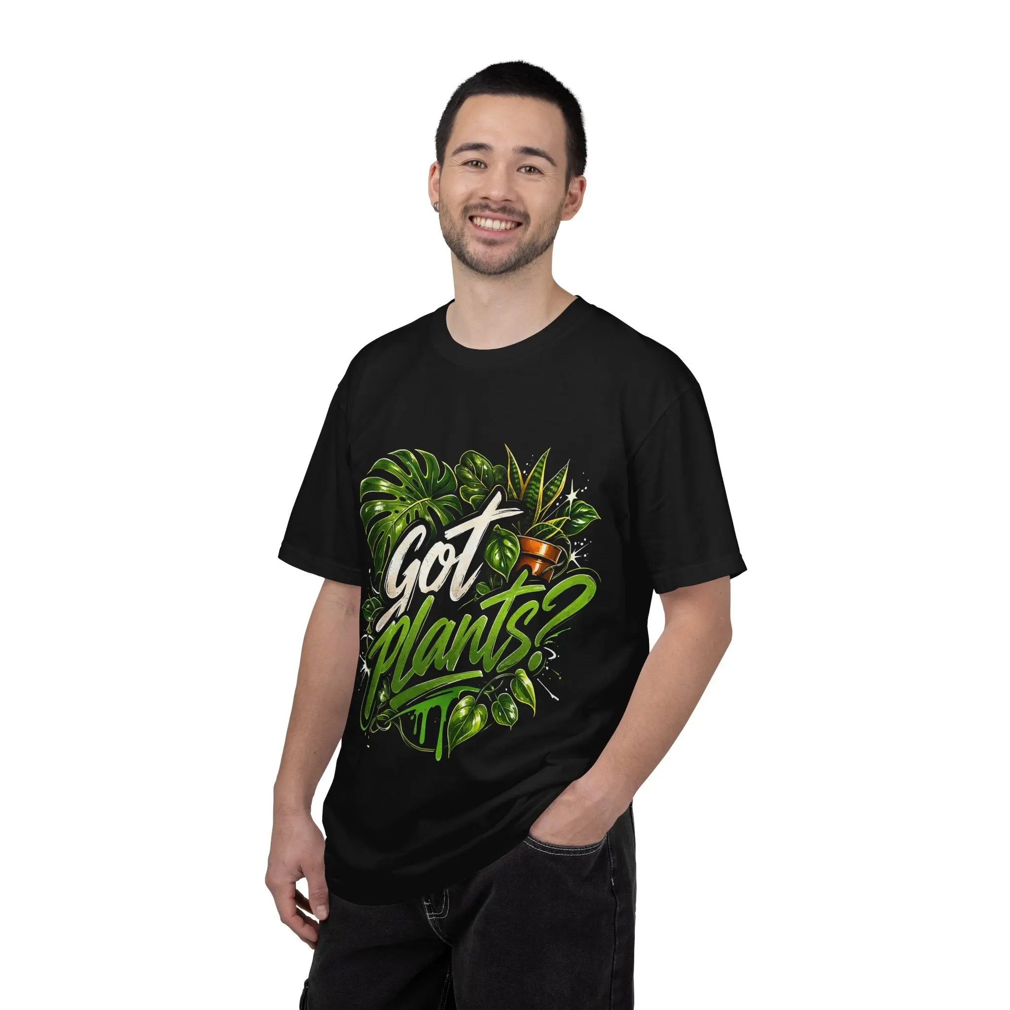 This heavyweight garment-dyed tee brings houseplant pride to everyday wear. Lush botanical artwork—Monstera leaves, pothos vines and other greenery—wraps bold, hand-lettered “Got Plants?” lettering, so the shirt reads like a love letter to indoor jungles. The soft, garment-dyed cotton feels lived-in from day one while the relaxed cut layers easily over a flannel or under a denim jacket. Wear it while tending your propagation station, carrying a new nursery pot home, or hosting a plant swap — it speaks the language of plant parents without shouting. The muted, vintage-like colors from the dyeing process make the print pop while keeping the overall vibe cozy and lived-in.