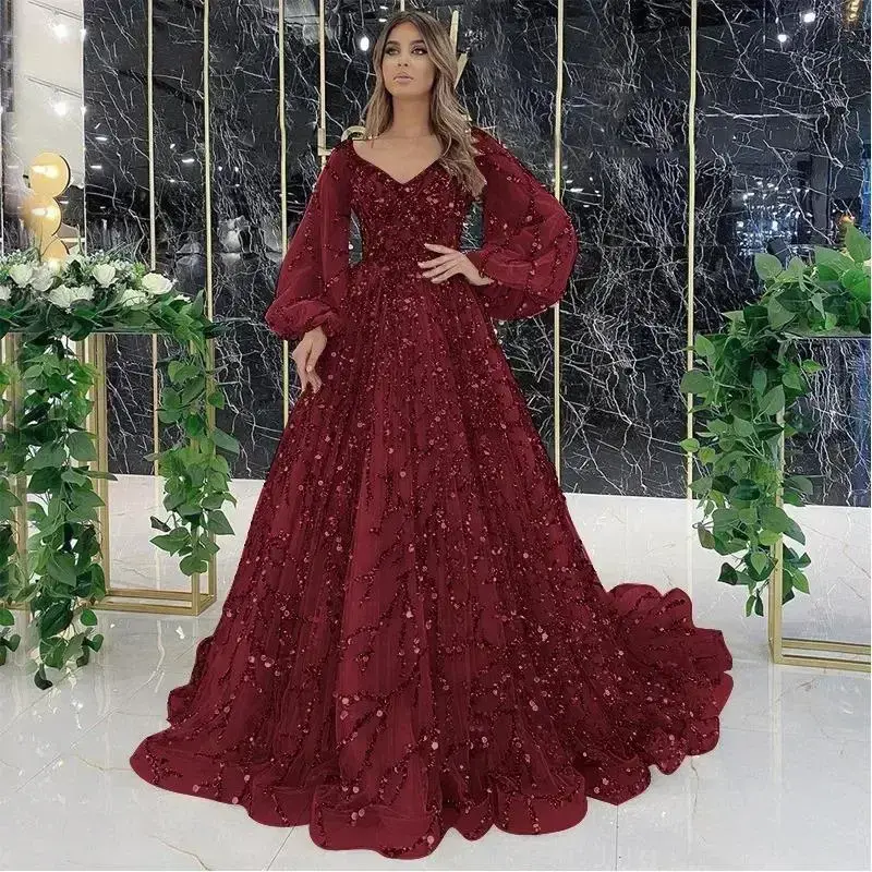 2025 New Women's Gold Luxury Evening Dress Sexy Female Style Queen Dress Women Elegant Vestidos Formal Womenswear Workwear Long Sleeve
