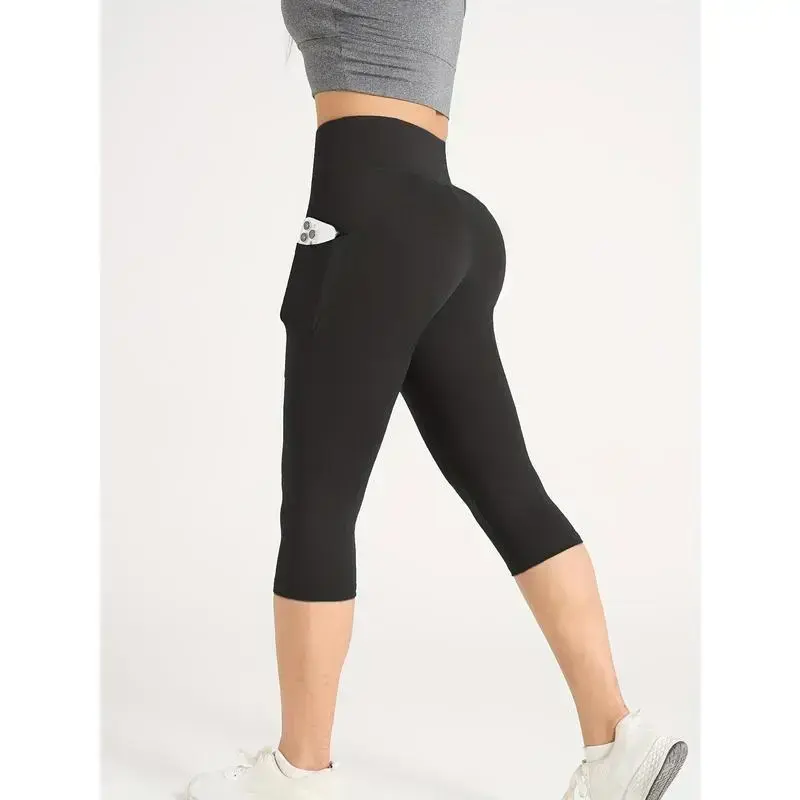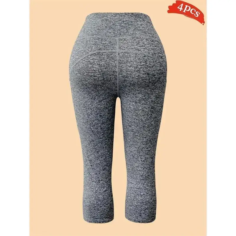 4-Pack High Waisted Booty Sculpting Yoga Capris, Compression Leggings with Side Phone Pocket Fitness Pants