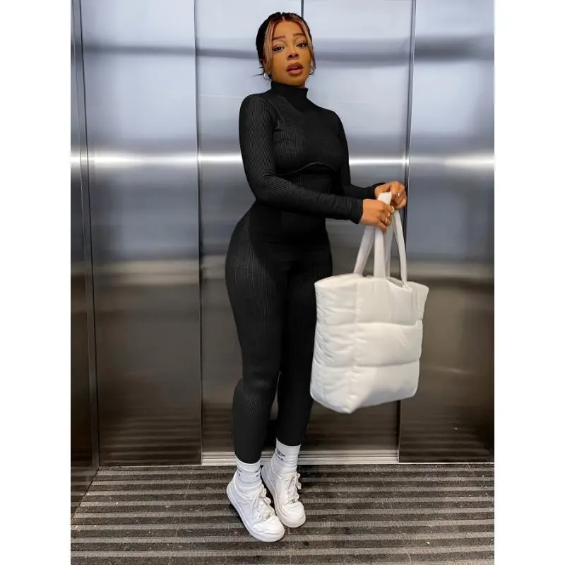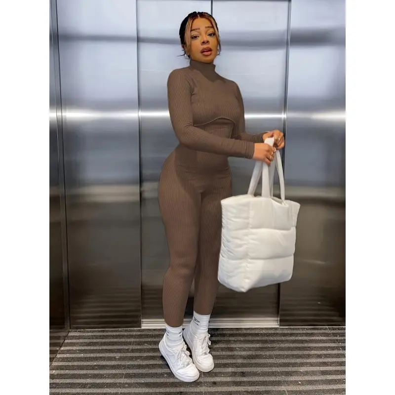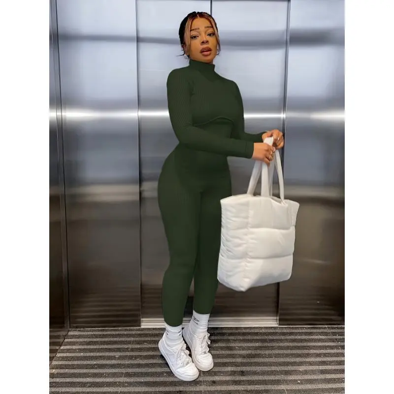 Women's Solid Color Tight Turtleneck Long-sleeved Jumpsuit in Polyester and Spandex Medium for Casual Wear Womenswear Bodysuit
