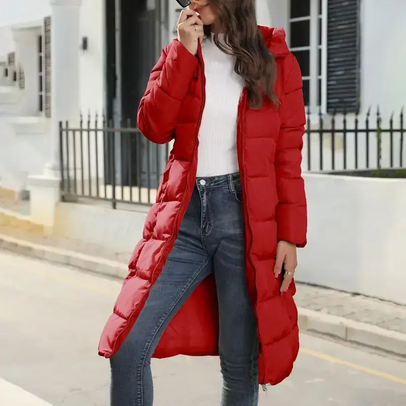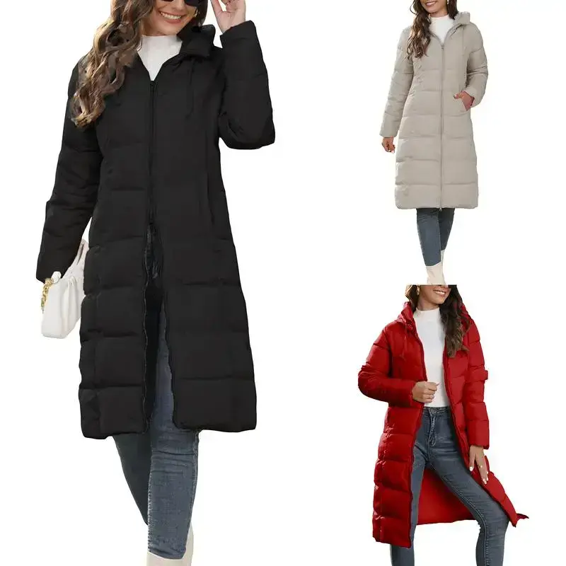 Women Ladies Girls Long Puffer Jacket Winter Warm Quilted Coat Long Sleeve Zip Up Outwear with Hood Casual Womenswear