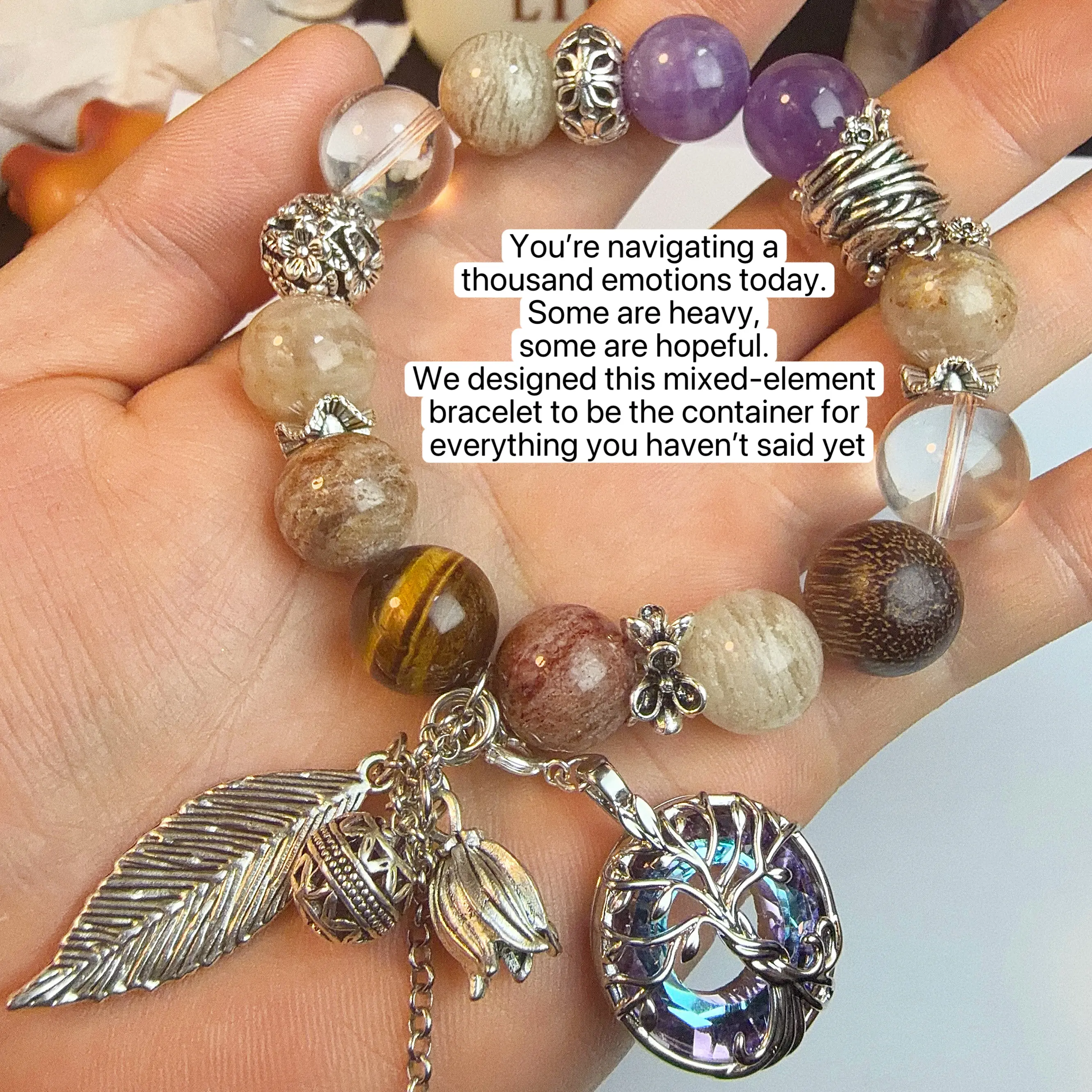 100% recyclable packaging. Size: 17 cm / 6.7 inches. Style: Elastic stretch bracelet. Beads: 12–14 mm mixed. Materials: Natural crystals + charm. Handmade with intention — each piece carefully balanced in form and meaning. Your story stays safe with us. We only use it to create your gift. Not just a bracelet. A way back to yourself.