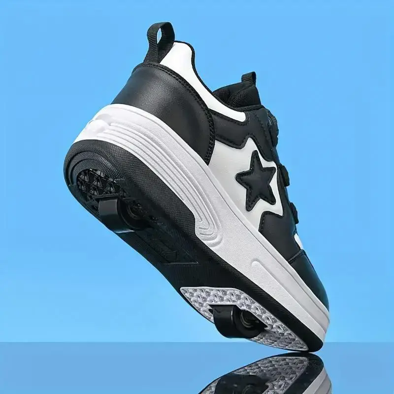 Fastening Type:Laces ??Youngsters' Trendy Roller Skate Sneakers ?for All Seasons!These trendy roller skate sneakers are designed for boys and girls aged 14 and under.They feature a solid color pattern, making them versatile for any season.The sneakers are ideal for roller skating, offering a low-top design with a round toe cap.Enjoy the convenience of detachable wheels and a rotating closure system. ???♂?Durable and Comfortable The upper material is microfiber leather, ensuring durability and comfort. The TPR sole provides excellent traction. The breathable lining keeps feet cool and dry during activities. Suitable for both boys and girls, these sneakers are a choice for young skaters. Item ID: DA 232408. ??Specifications at a Glance Pattern: Solid color Season: Fall, All-season Applicable: 14 And Under Brine Material: TPR Insole Material: Not specified Closure Type: Rotary Toe Cap: Round Toe Scene: Roller Skating Style: Not specified Applicable: Boys, Girls Upper height&cylinder height: Low top