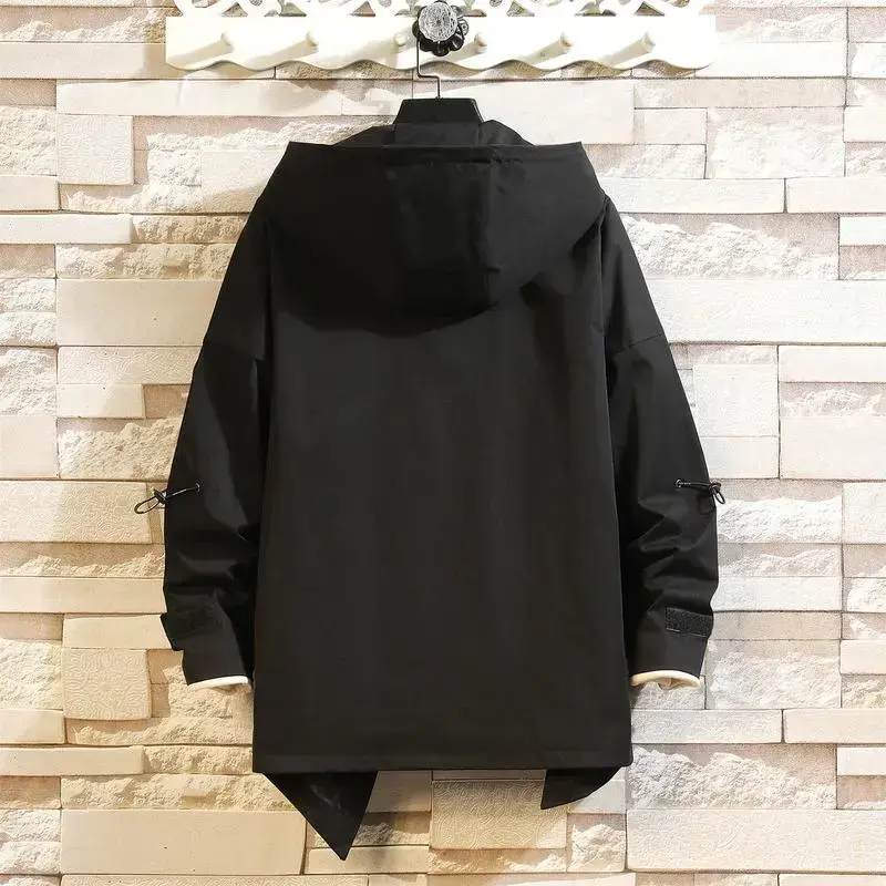 Men's Trench Jacket Zipper Patchwork Trench Pattern duck hoodie gift cotton fabric Hooded Coat