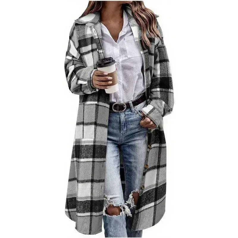 Plaid Jacket Womens Shacket Casual Lapel Button Down Long Sleeve Trench Coat Warm Winter Jackets