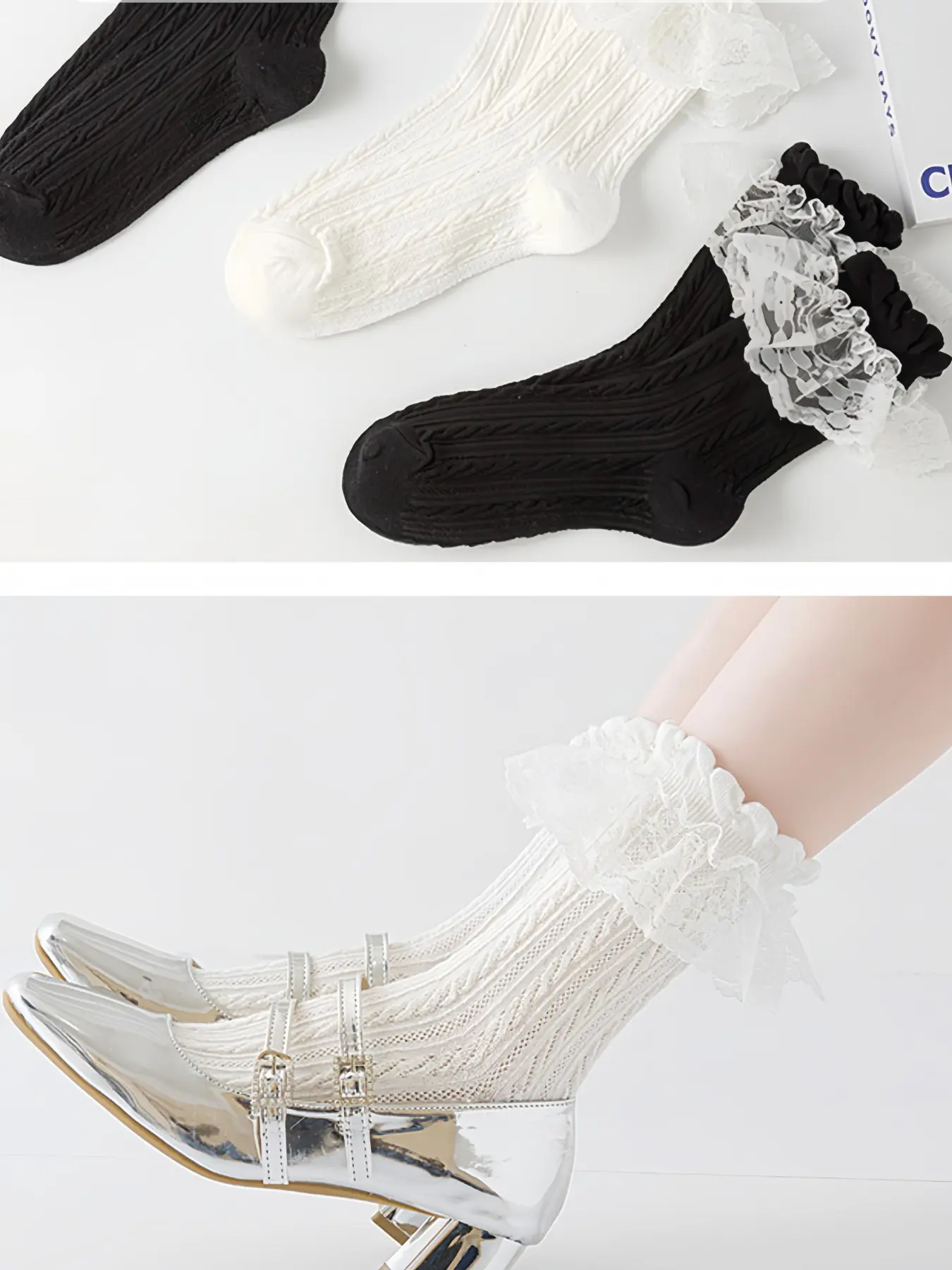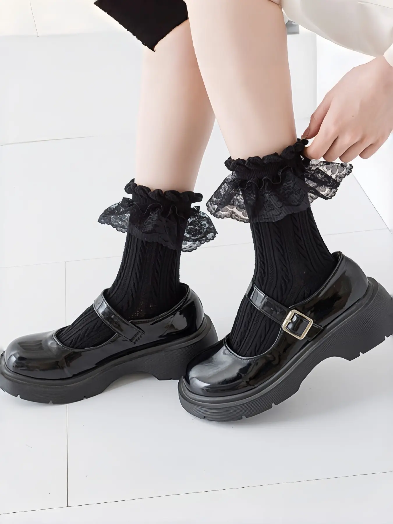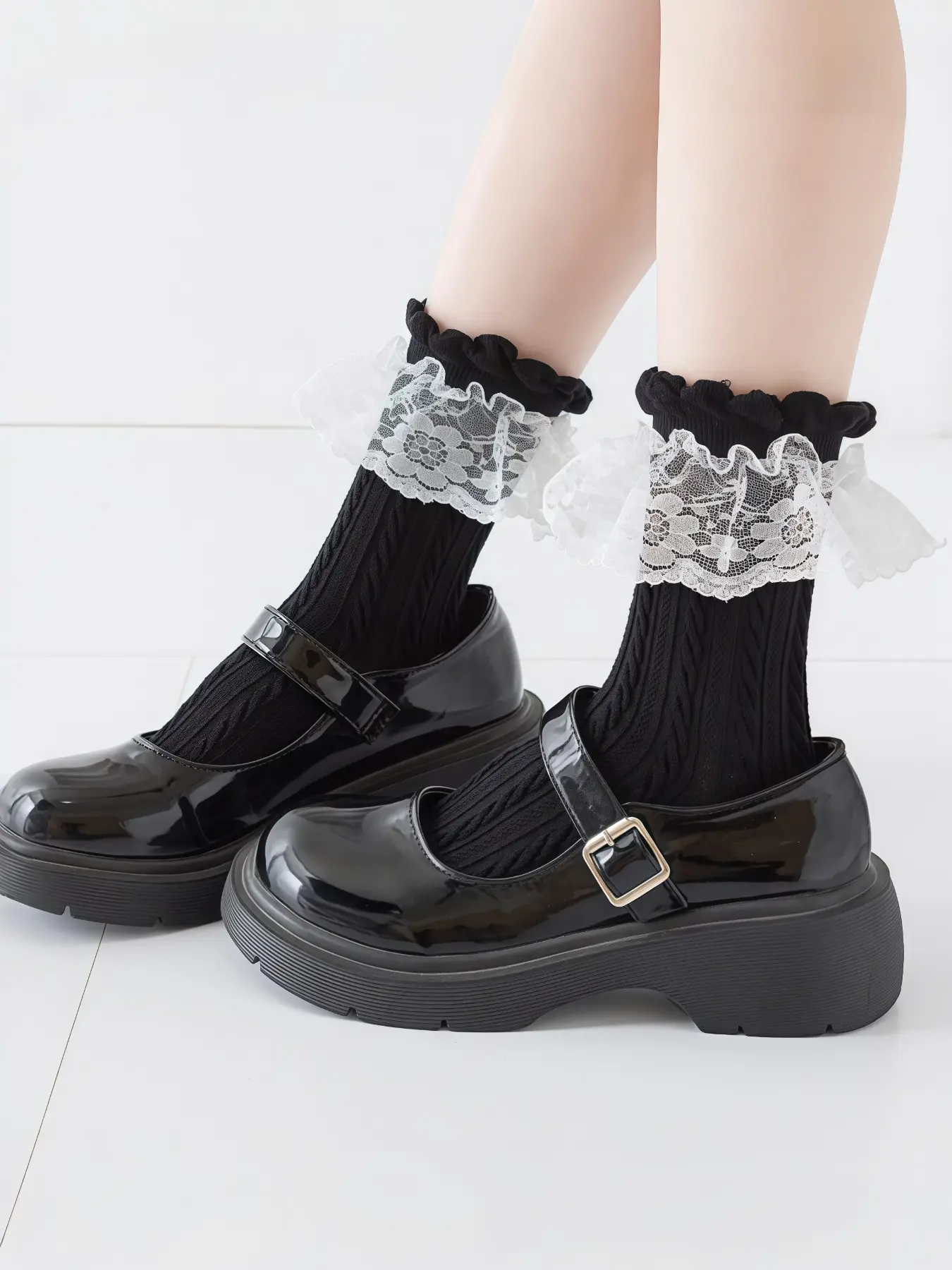 Lolita Lace Trim Socks for Women, Japanese Style Mesh Breathable Mid-Calf Socks, Perfect with Mary Jane Shoes