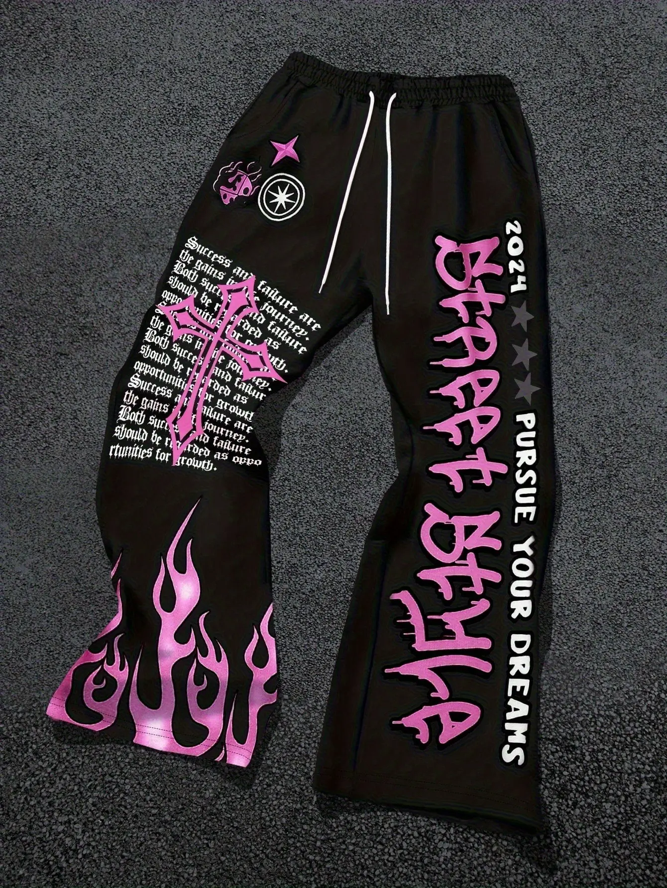 Summer High Waist Wide Leg Pants Polyester Casual Streetwear Daily Wear Party Vacation Y2K Anime Letter Print Oversized Loose Fit Harajuku Style For Women Teens Girls TikTok Fashion Trend