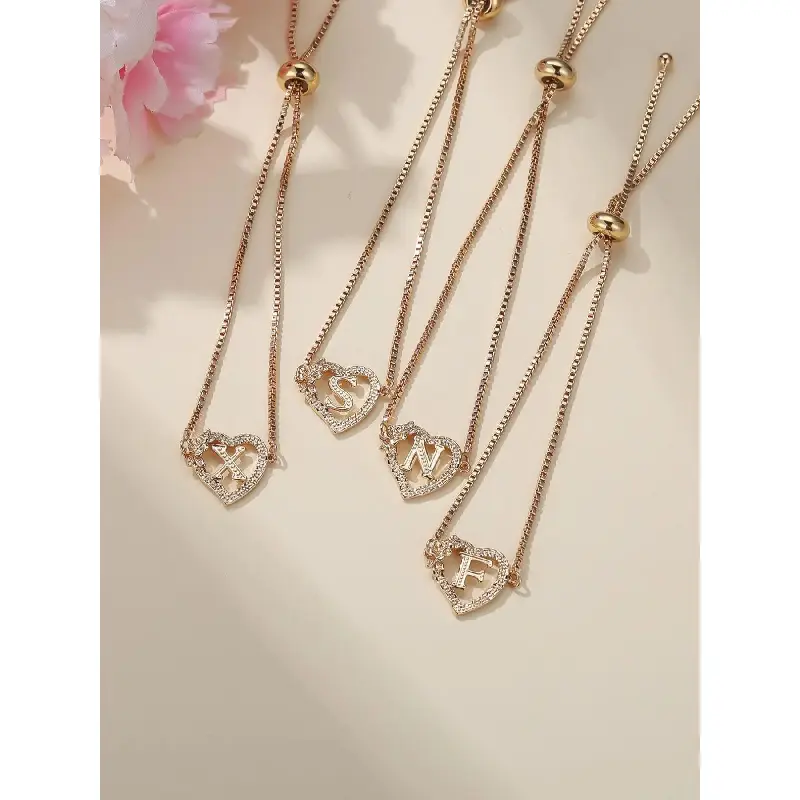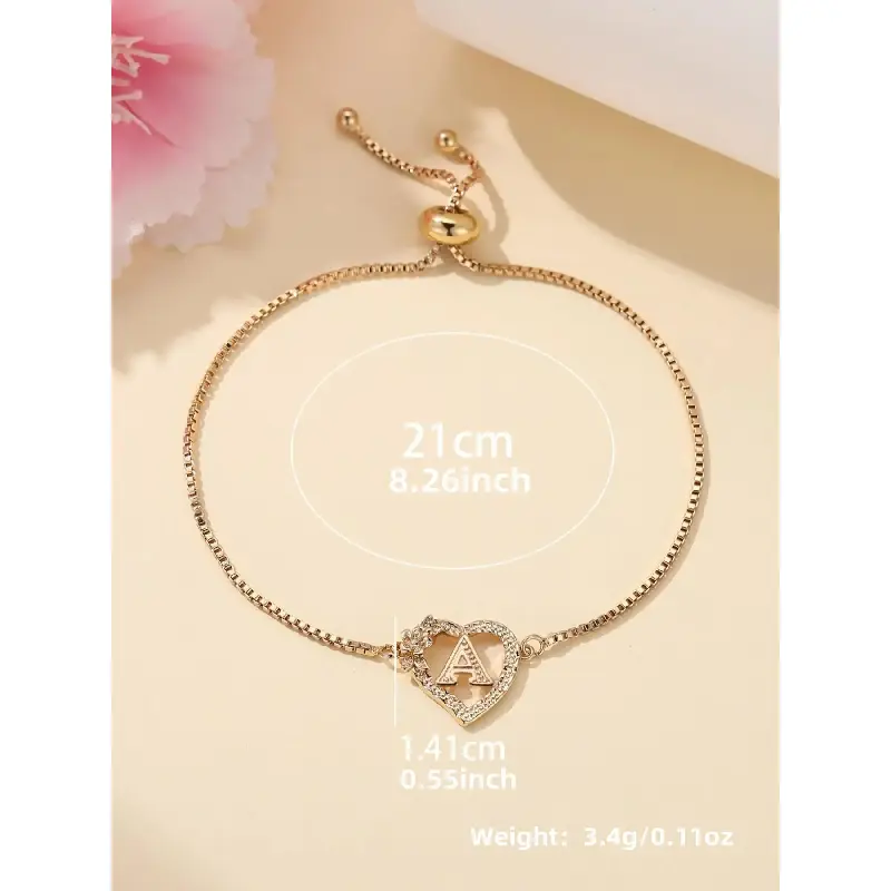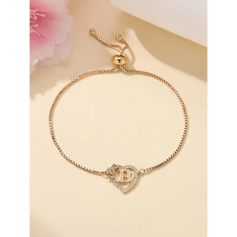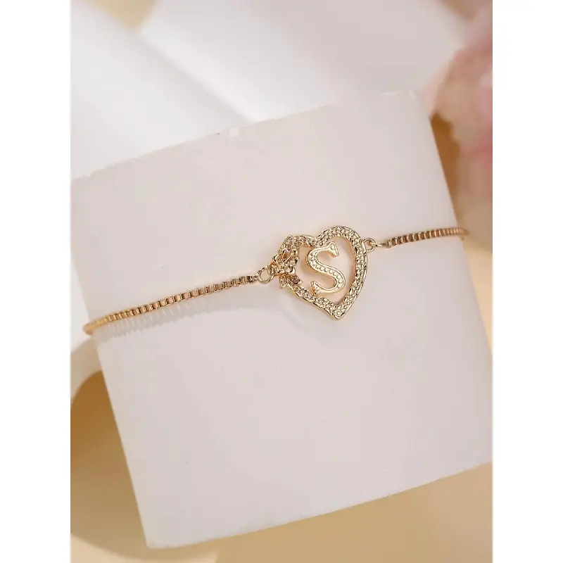 Women's Elegant Heart Design Initial Letter Charm Bracelet, Heart Shaped Bracelet, Exquisite Trendy Bracelet, Letter Link Bracelet for Women & Girls As Gift