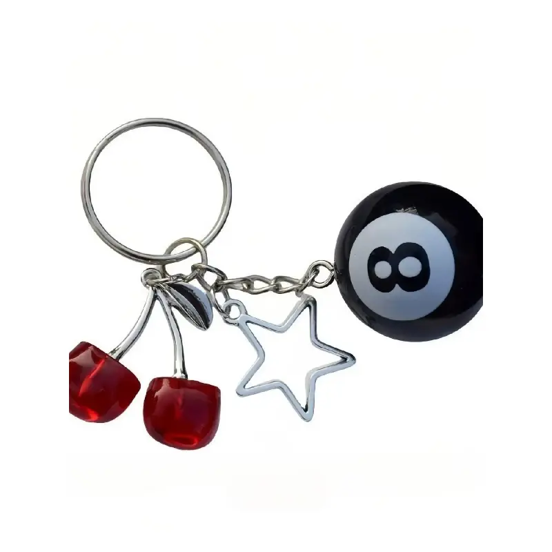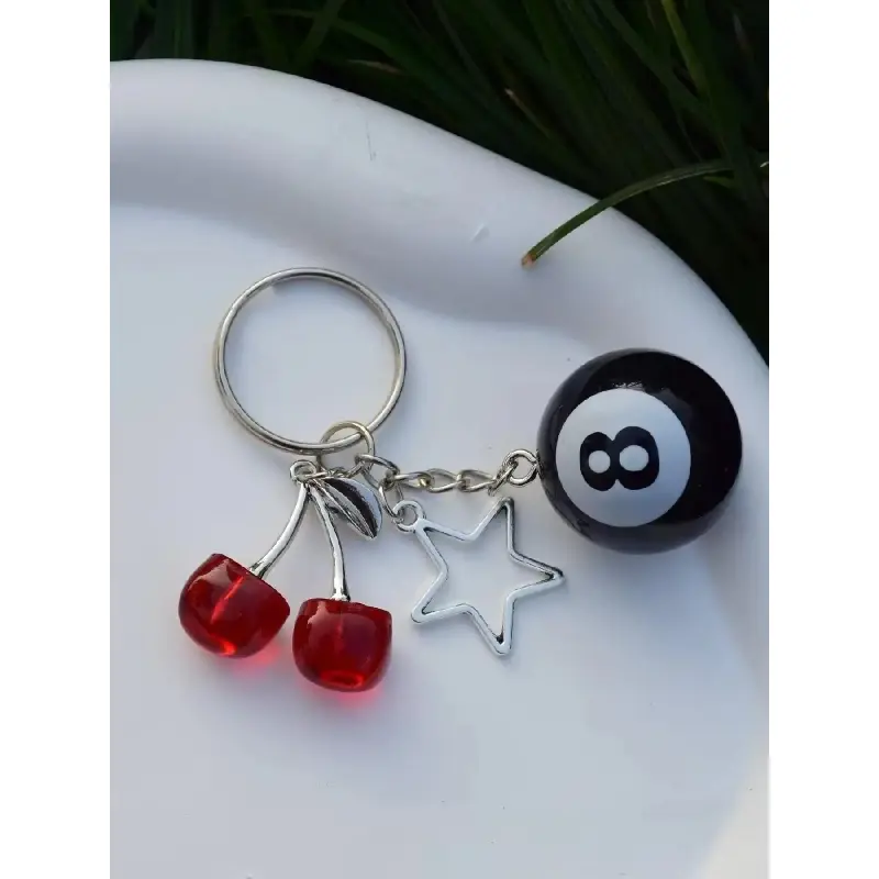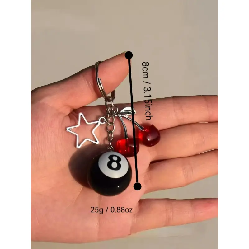 [Unique Features]: This keychain combines cherry and star motifs with billiard elements, creating a fun and eye-catching accessory distinct from typical designs.