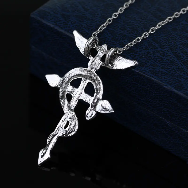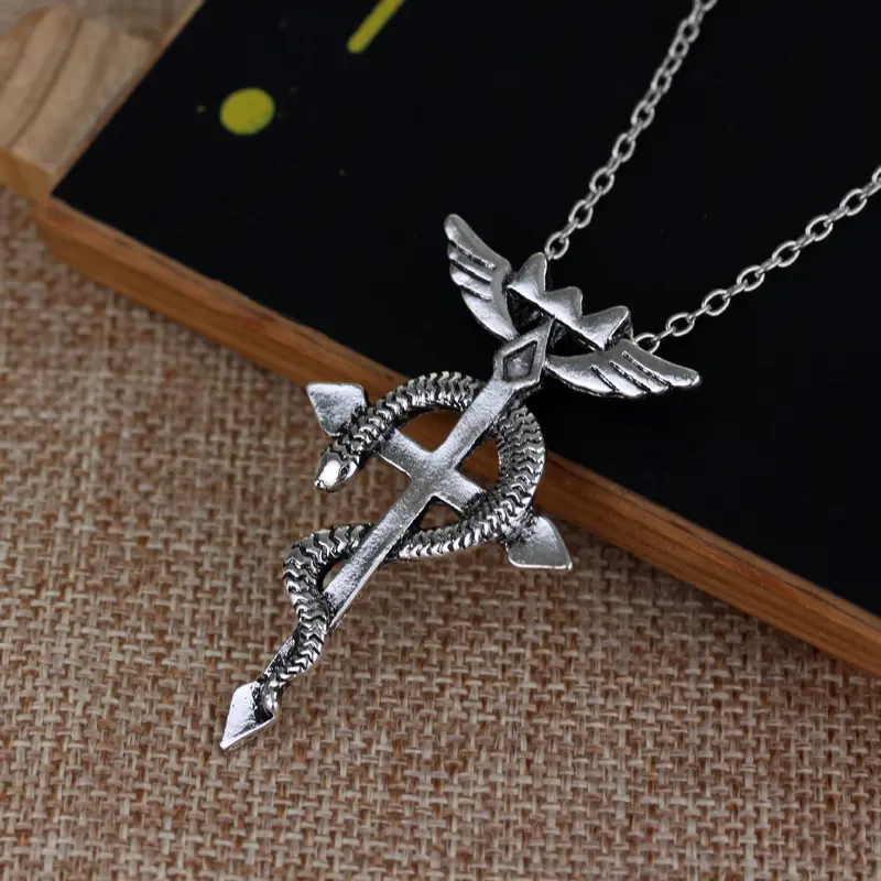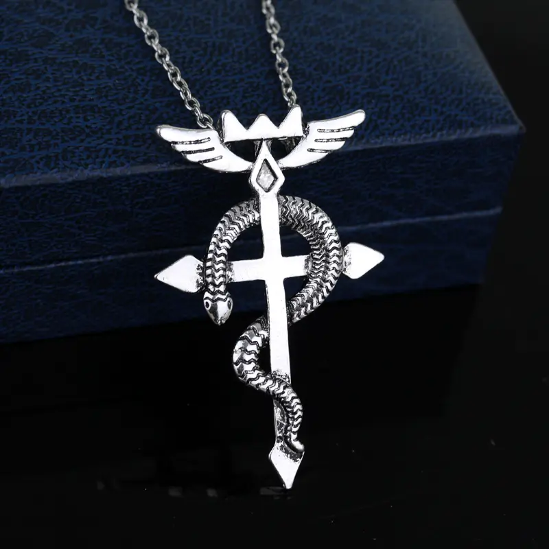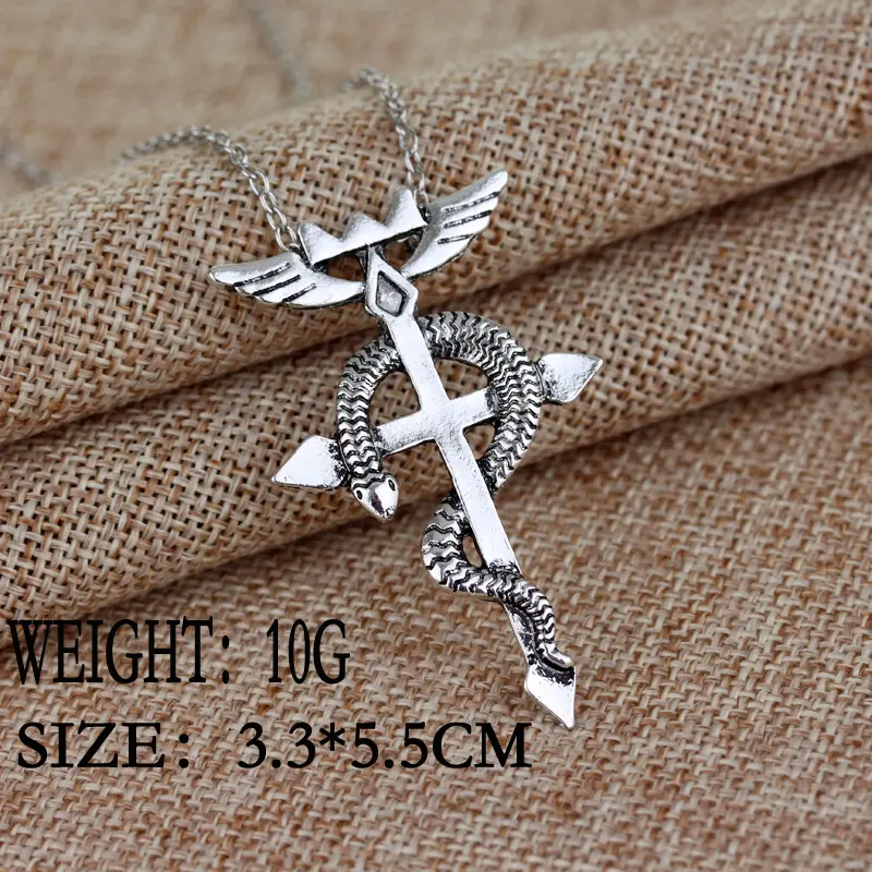 New Statement Anime Cosplay Jewelry Fullmetal Alchemist Edward Magic Symbol Snake Cross Pendant Vintage Necklace
