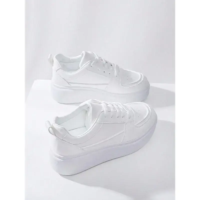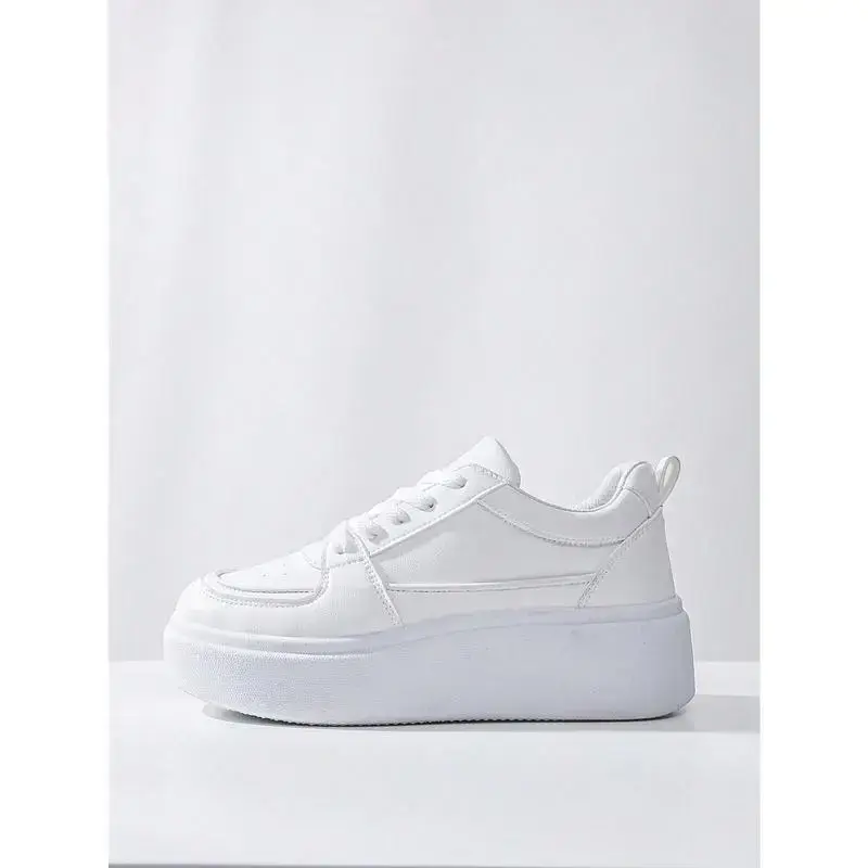 Style:Fashionable Color:White Type:Skate Shoes Toe:Round Toe Pattern Type:Plain Strap Type:Lace Up Upper Height:Low-top Size Fit:True To Size Material:PU Leather Upper Material:PU Leather Lining Material:PU Leather Power Supply:None