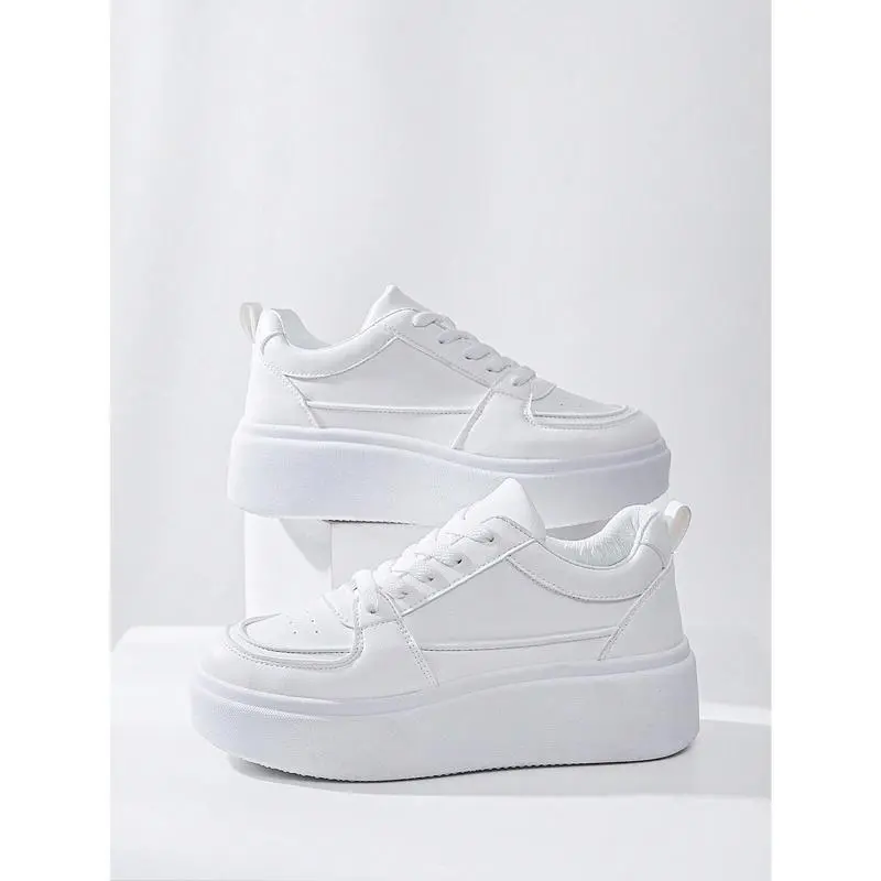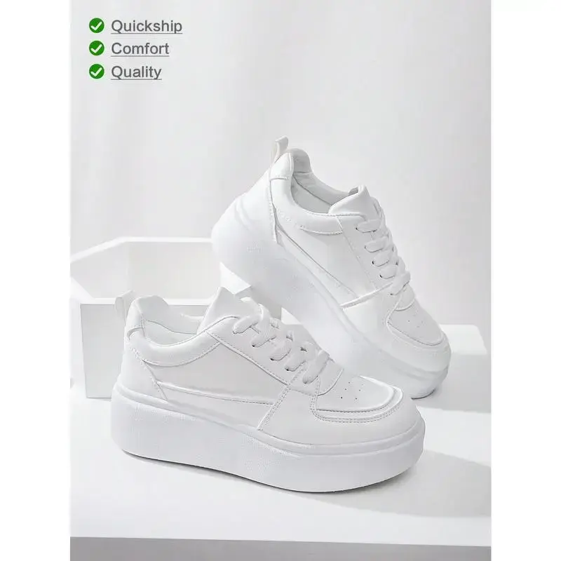 [Quick Delivery]Classy Aesthetic Spring Break 2024 New Style Casual White Shoes For Women, Ladies Platform Shoes, Cute White Low Top Shoes, Comfortable And Fashionable Sneakers, Increase Height By 5cm, Suitable For Short Women Vacation Outfits