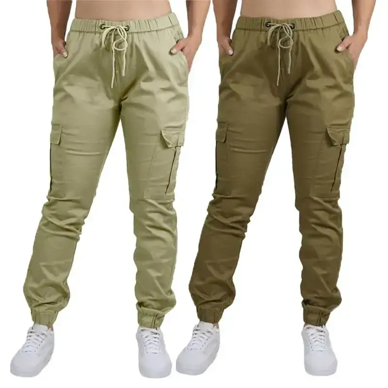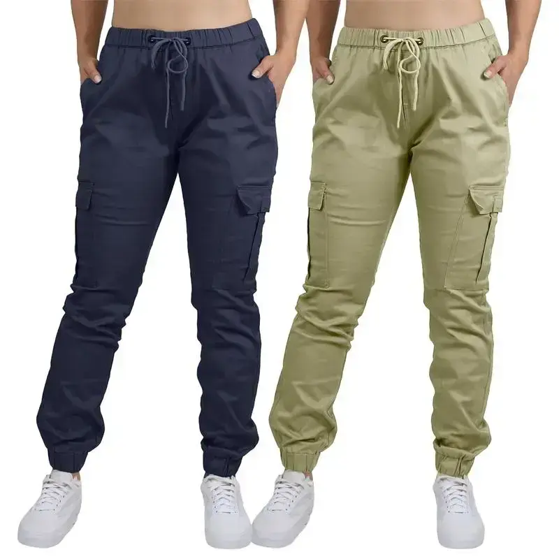 Stay comfortable and stylish on your outdoor adventures with these 2-Pack Women's Cotton Flex Stretch Cargo Hiking Combat Quick Dry Jogger Pants They are Loose-Fit Design They are Stretchable for Extra Comfort & Versatility They have Outer Adjustable Drawstring For Desired Comfort & have Elasticized Ribbed Waistband & Elasticized Ribbed Cuffs They have 2-Side Pockets; 2-Cargo Pockets, 2-Back Pockets They are Imported Materials: 96% Cotton, 4% Spandex Available in sizes Small to 2XL Care Instructions: Machine Wash Cold