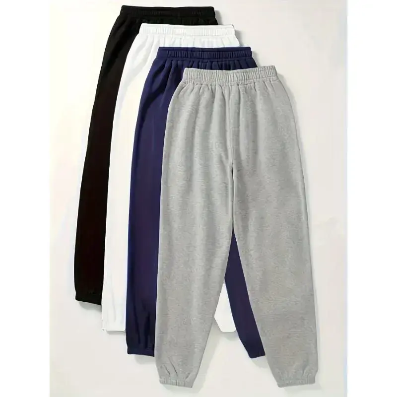 2025newSolid Color Simple Sweatpants 4-pack, Versatile Elastic Waist Joggers, Suitable For Spring And Autumn, Women's Clothing