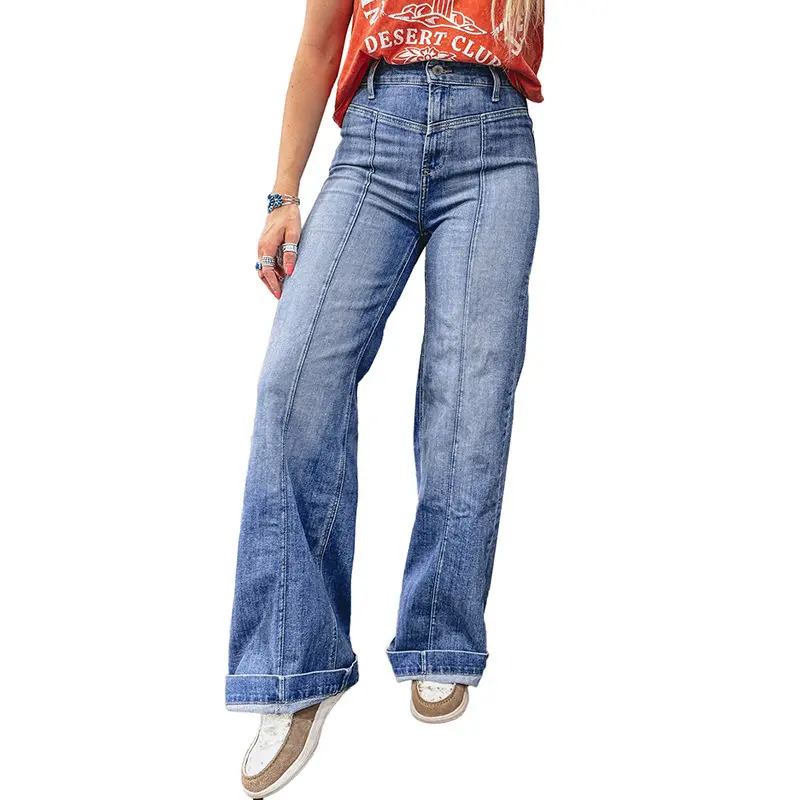 Women's Jeans, Beau Blue, High Rise, Tailored, Center Seam Detail, Straight Leg, Casual Style, Comfortable Fit, Flattering Silhouette, Denim Fabric, Daily Wear, Autumn Fashion, Easy Pull-On, Versatile, Beach Outfits, Vacation Ready