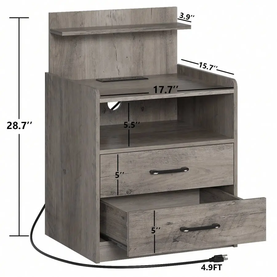 Powered by a wall plug, this grey MDF nightstand is versatile enough for bedrooms, living rooms, dorms, and more. It combines style, functionality, and convenience in one sleek piece, making it the perfect addition to your home for organized, comfortable living.